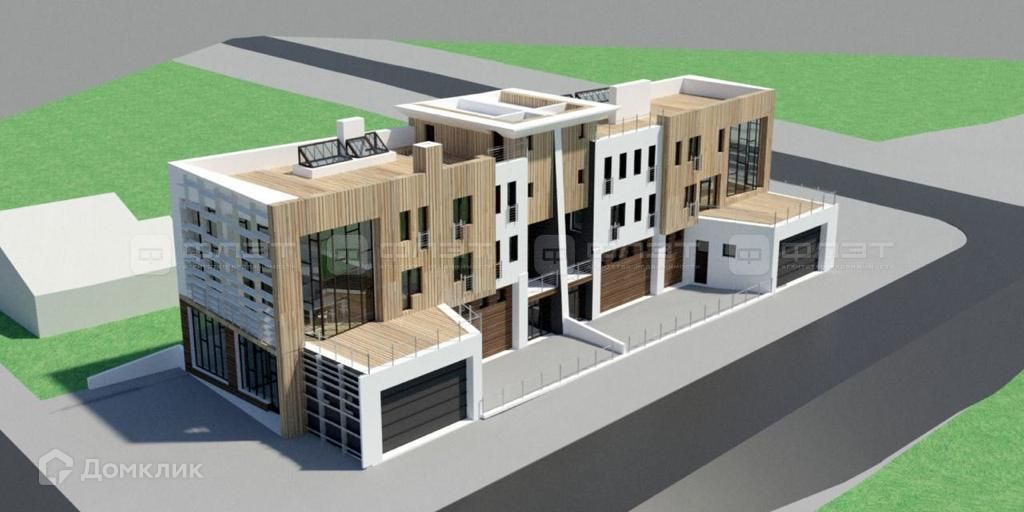 2 и 3 этажи - современное жильё с эксплуатируемой плоской кровлей (терраса).