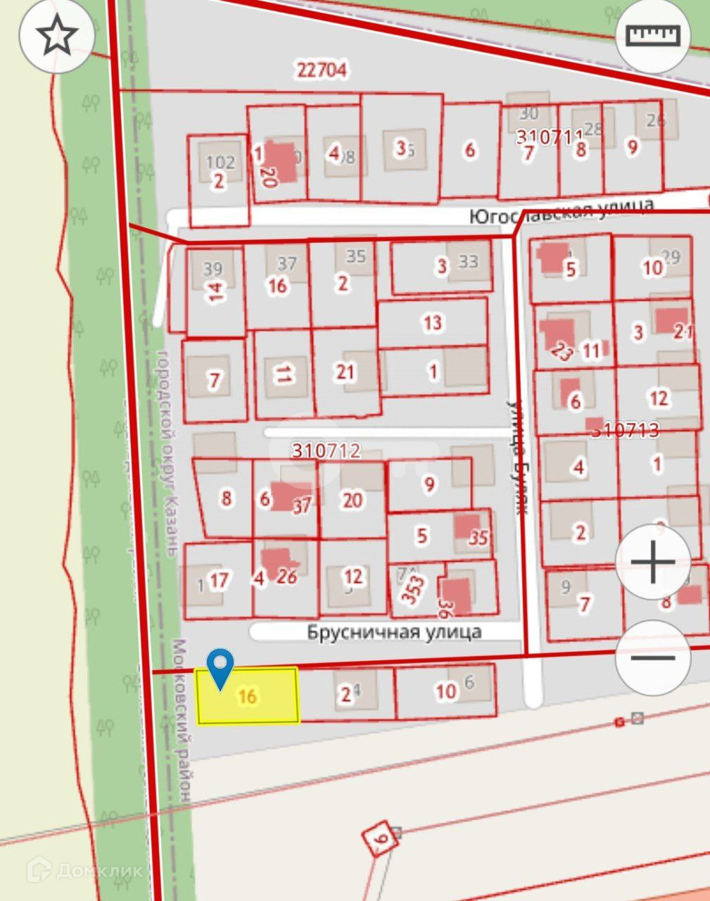 Участок расположен по адресу: Московский район, жилой массив Краснооктябрьский, Брусничная ул., 4 (черта города!).