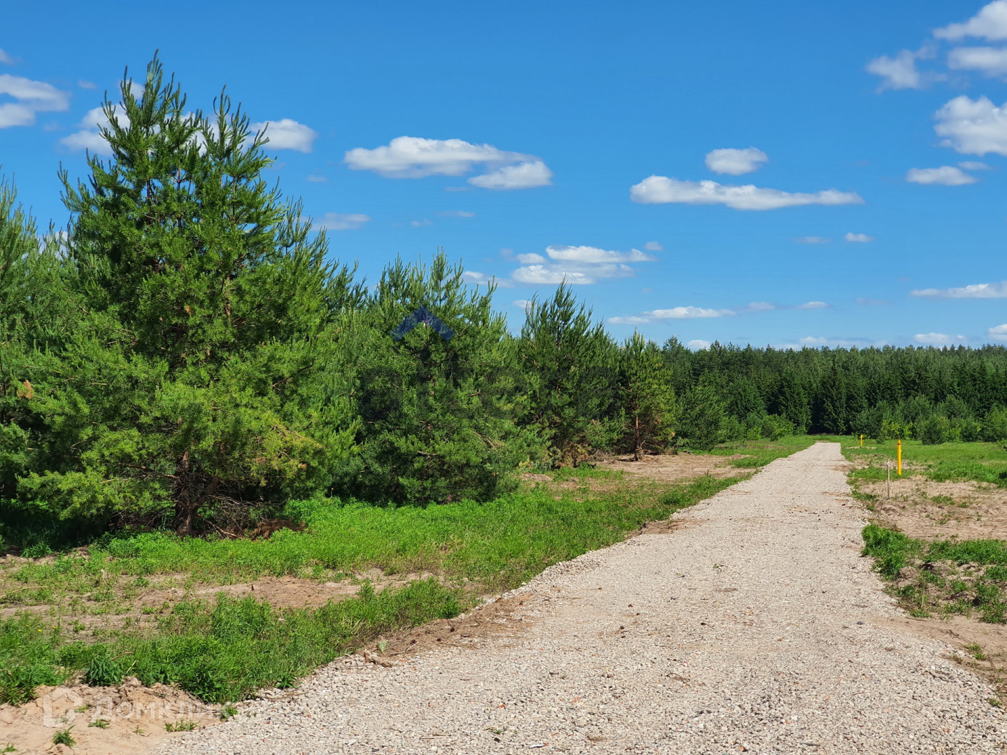 Участок ровный, прямоугольной формы с удобными подъездными путями. Коттеджный поселок с двух сторон окружен густым лесом.