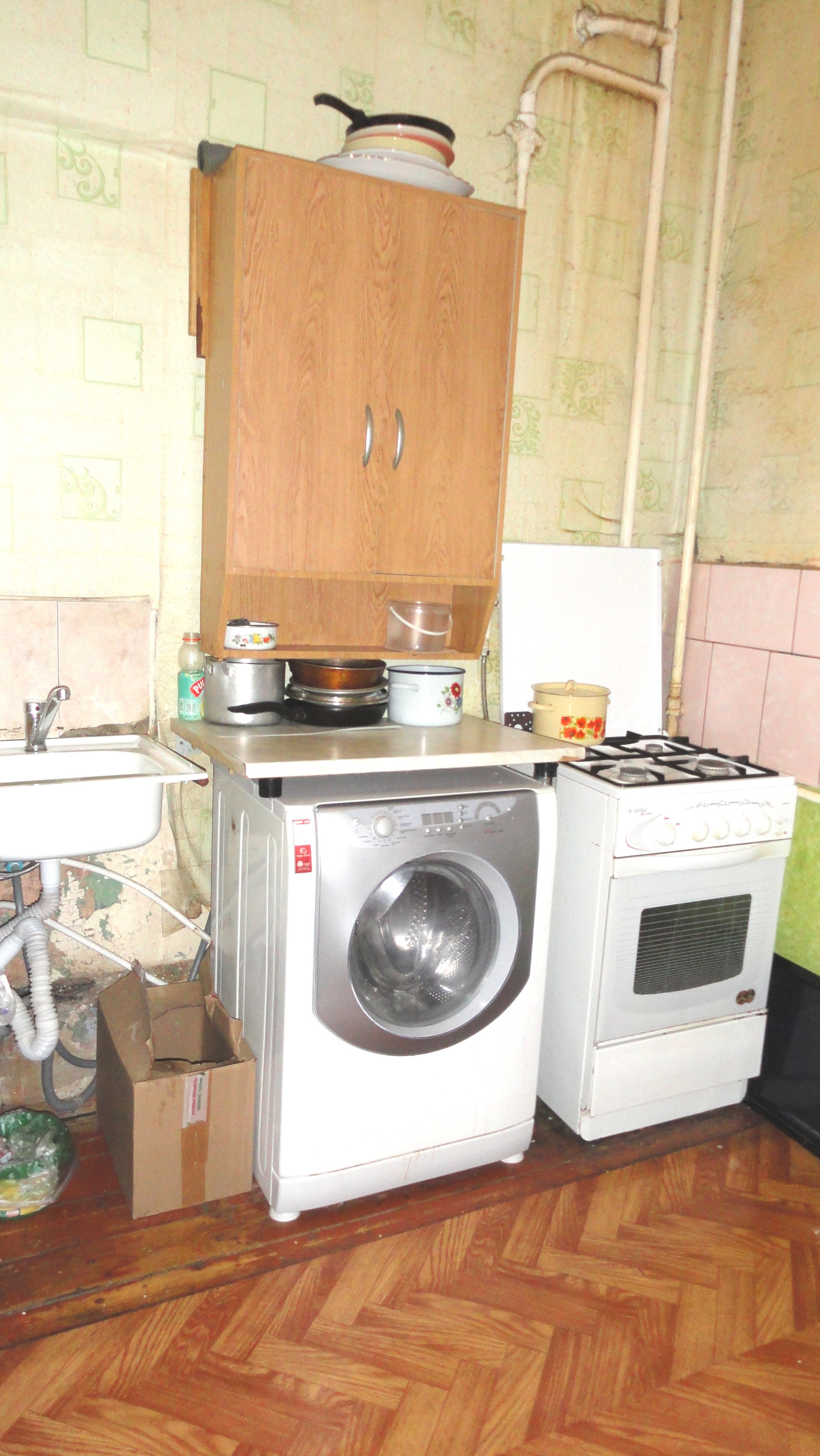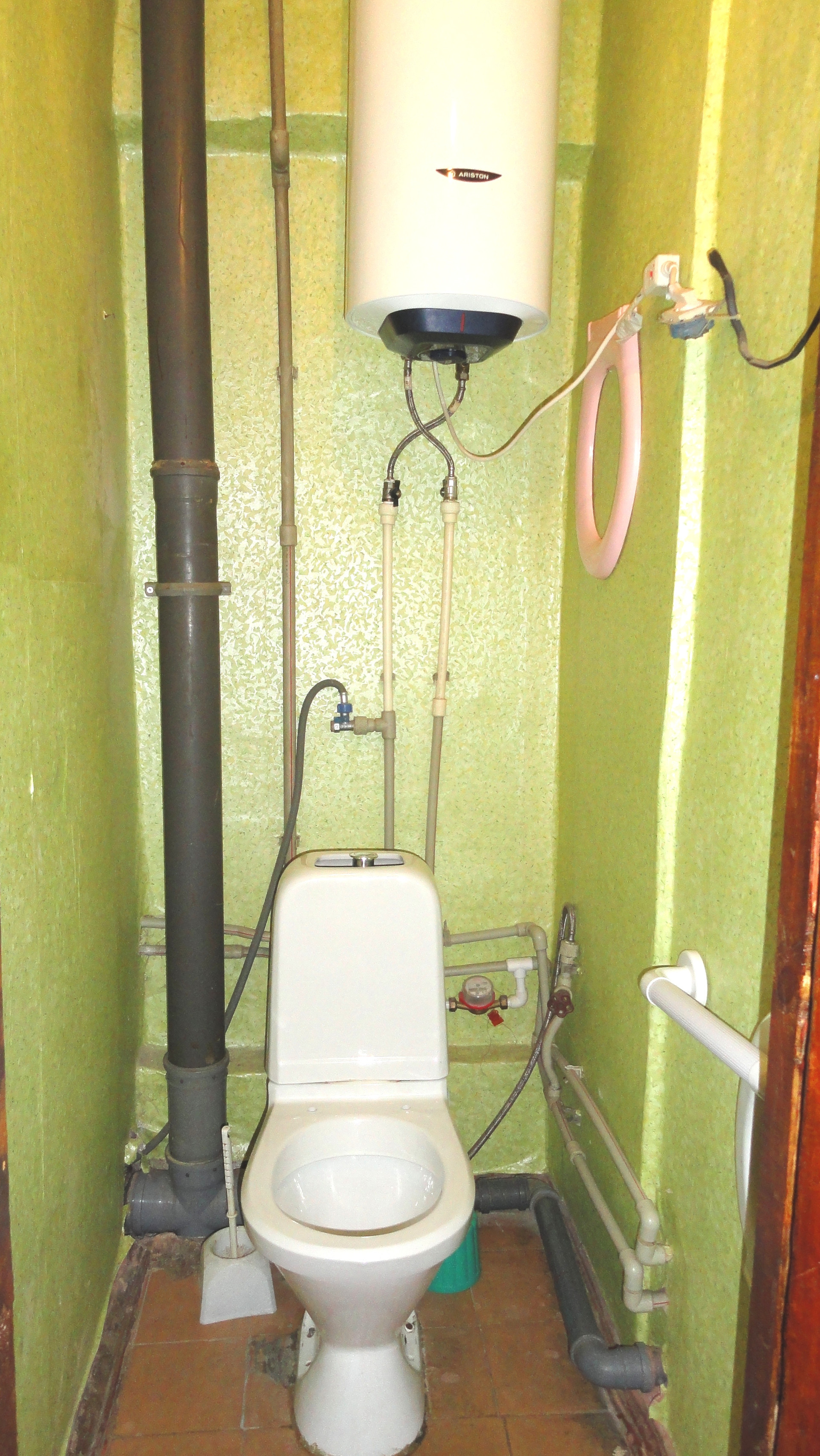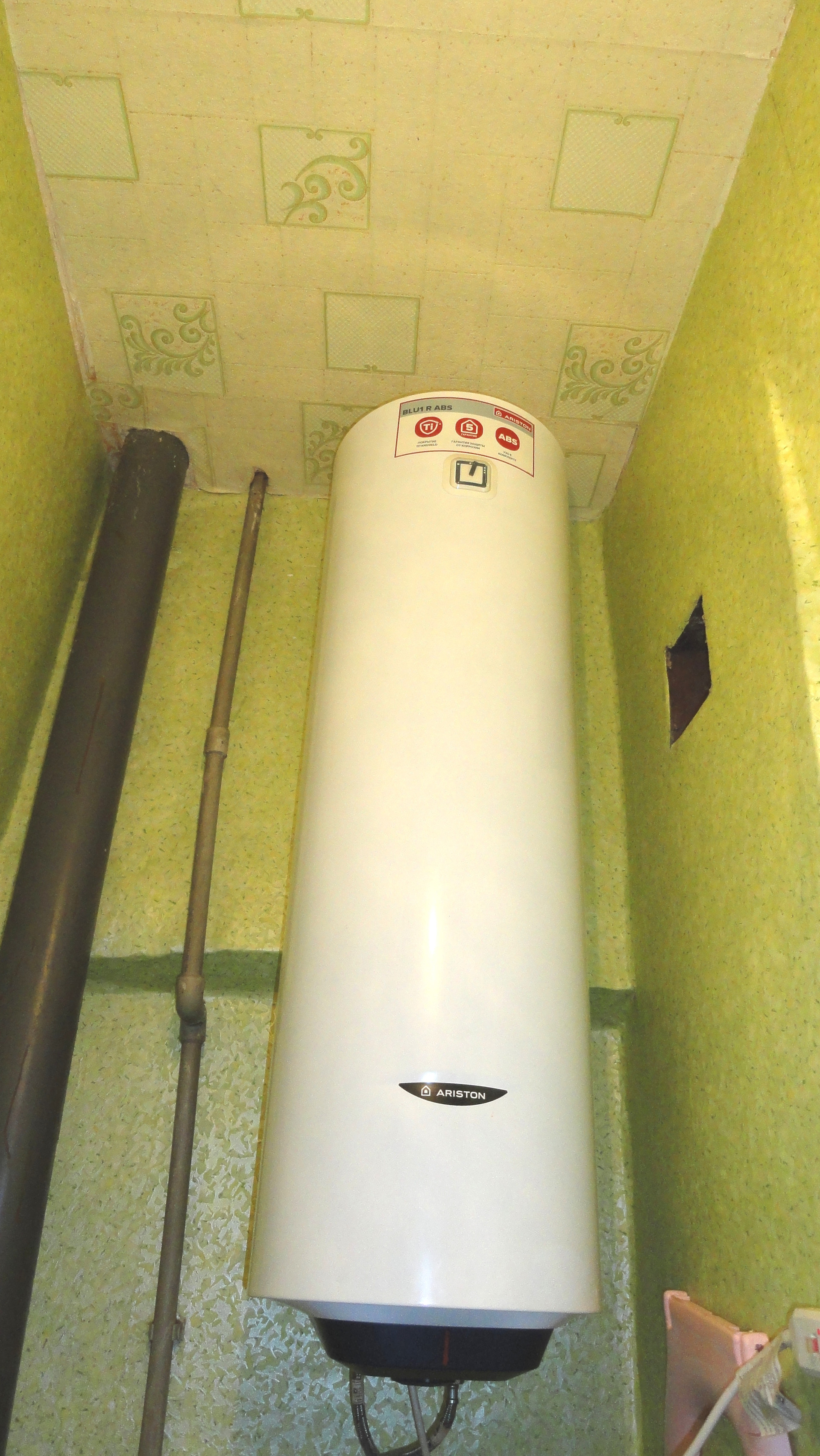 Установлен большой водонагреватель, счетчики.