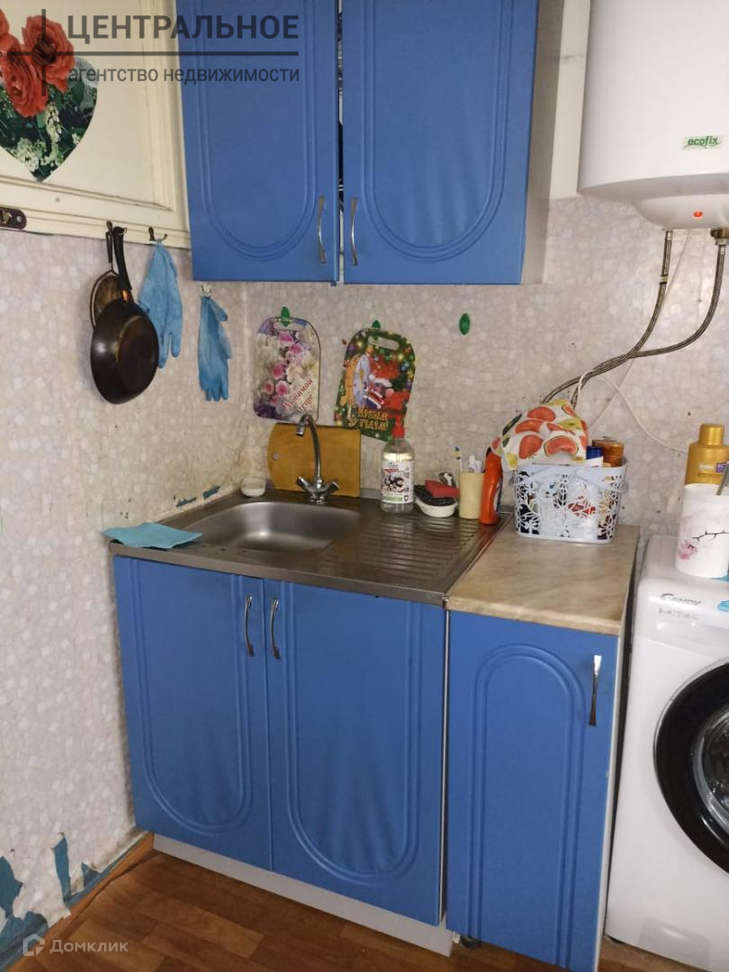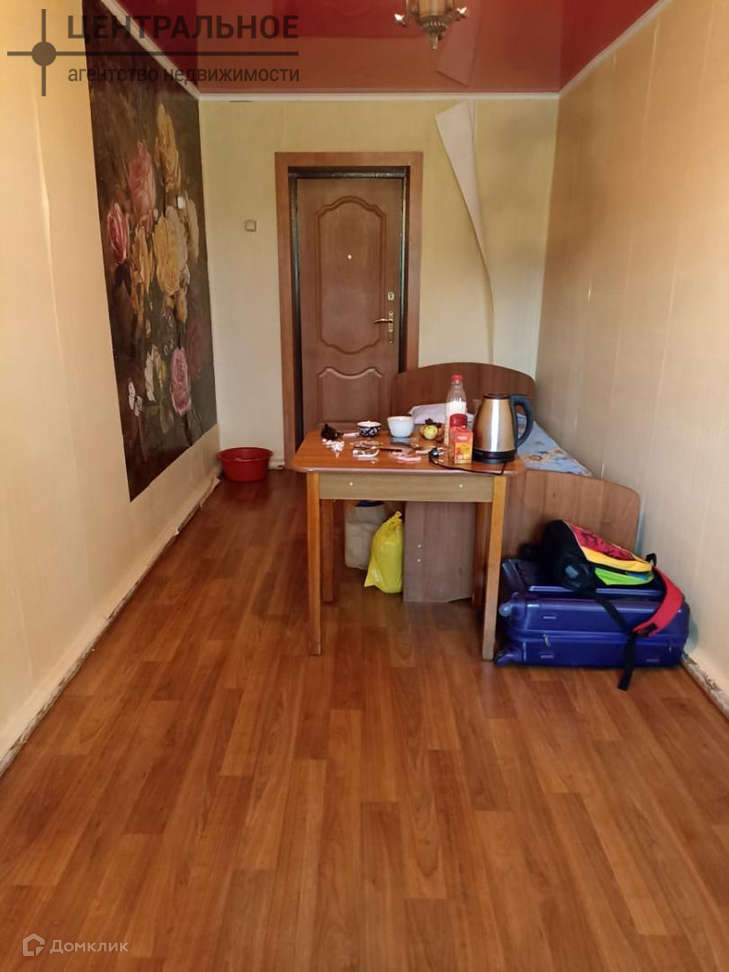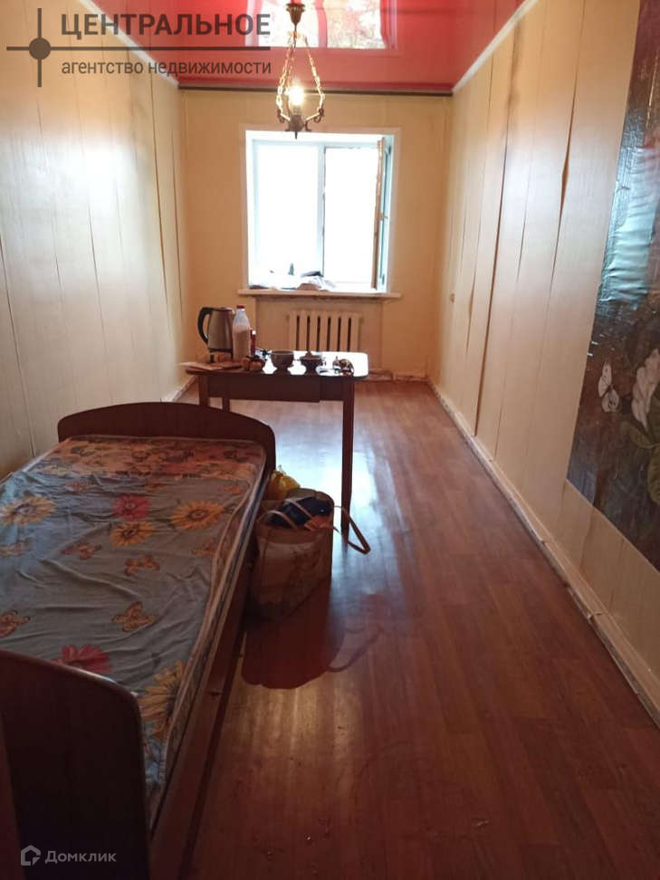 Из мебели кровать. Входная железная дверь. Общий коридор. Для каждой комнаты выделено место на общей кухне. Нету душа и ванной!
