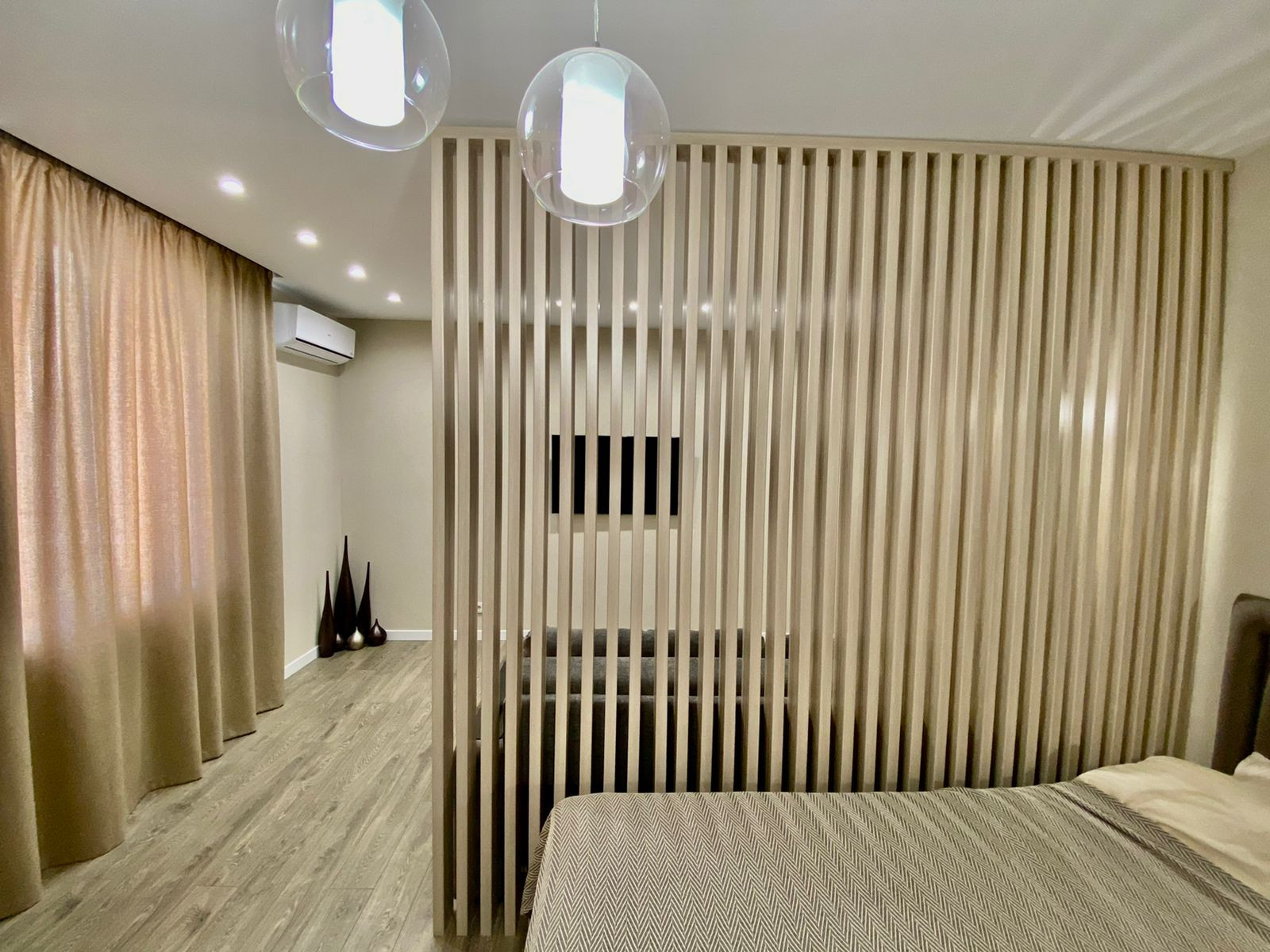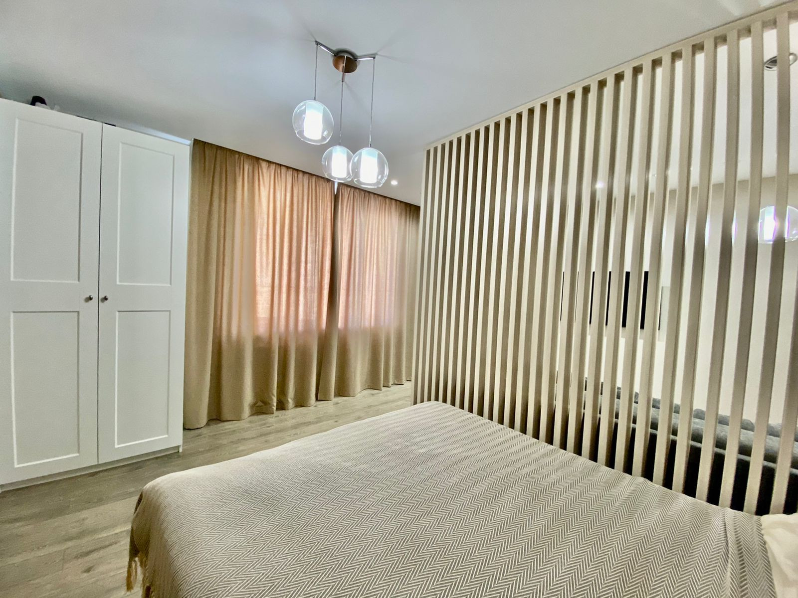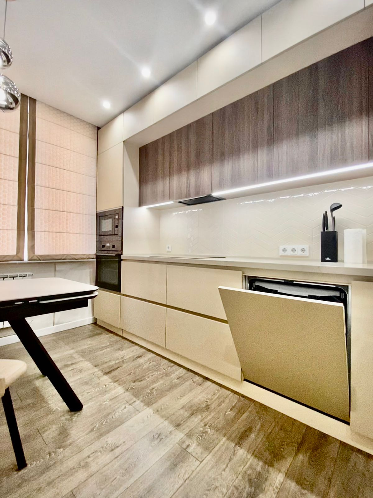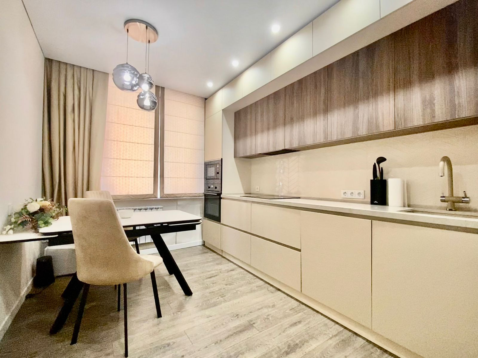 Квартира оборудована всей необходимой техникой и мебелью для комфортной и полноценной жизни: Двухспальная кровать, Раскладной диван, Детская кровать, Кухонный гарнитур, Посудомоечная машина, Кухонный стол, Стулья, Холодильник, Варочная панель, Духовой шкаф, СВЧ - печь, Стиральная машина, Зеркало с подсветкой, Гардеробная, Телевизор с функцией Smart TV и т.д. и т.п.
