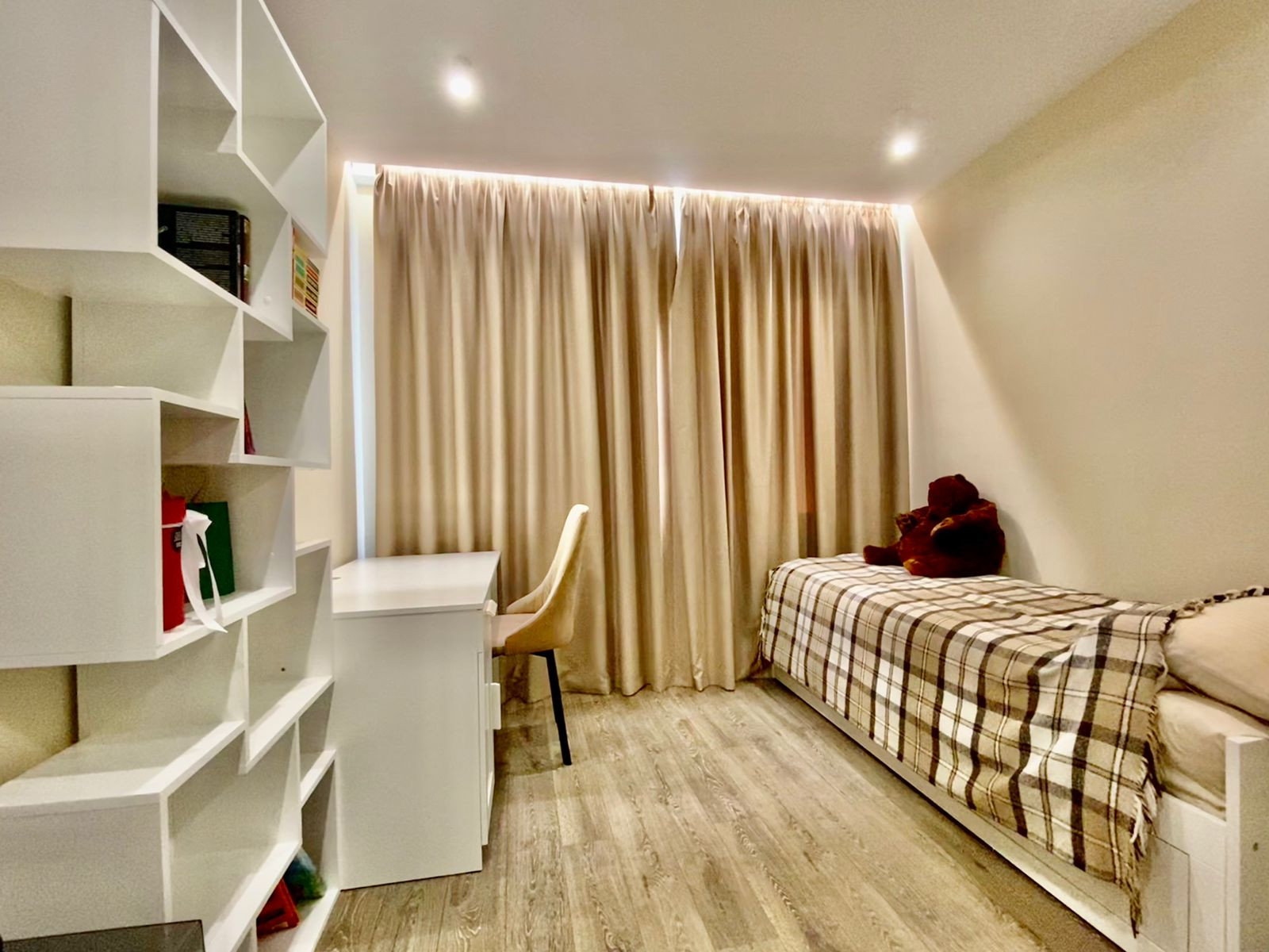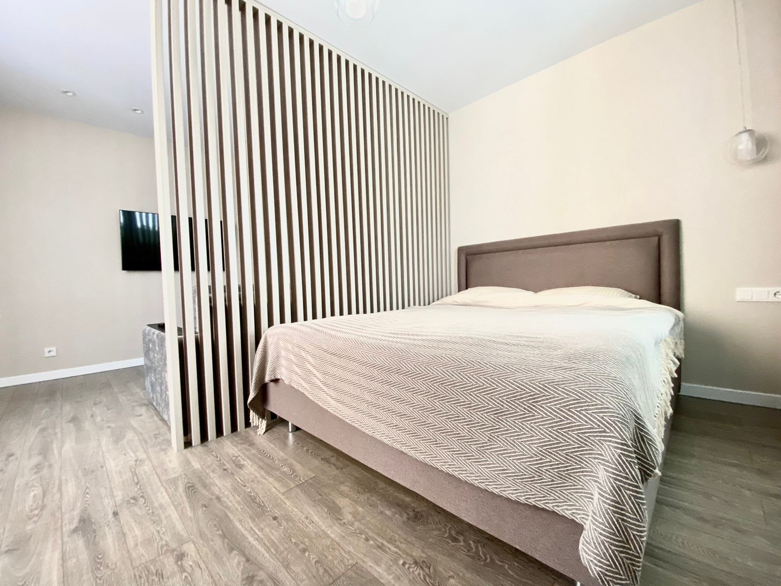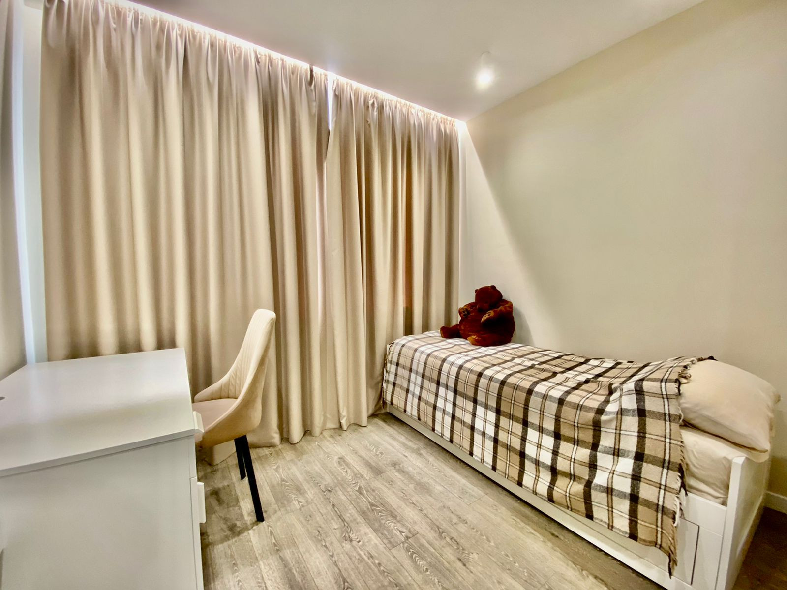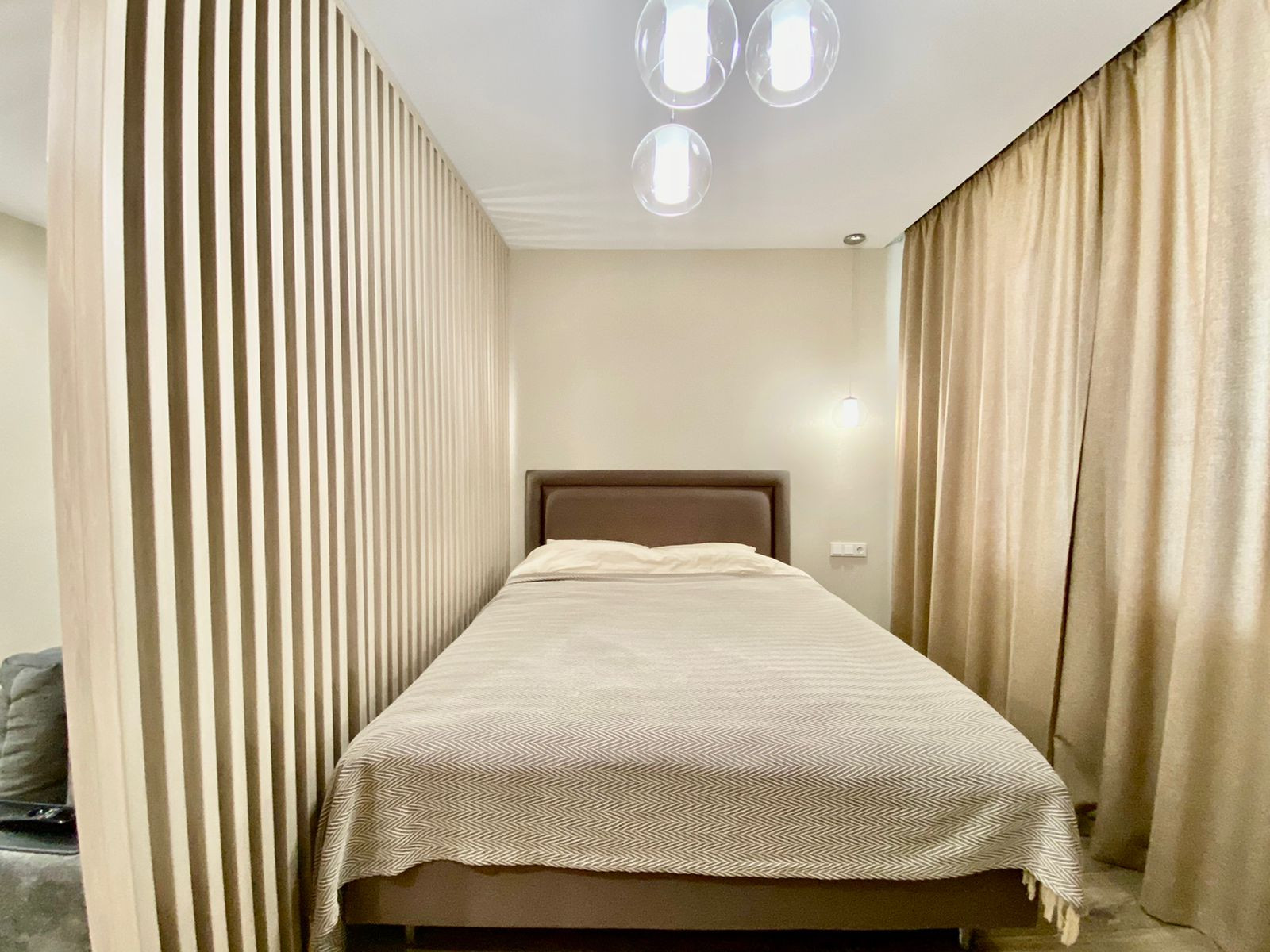 Квартира оборудована всей необходимой техникой и мебелью для комфортной и полноценной жизни: Двухспальная кровать, Раскладной диван, Детская кровать, Кухонный гарнитур, Посудомоечная машина, Кухонный стол, Стулья, Холодильник, Варочная панель, Духовой шкаф, СВЧ - печь, Стиральная машина, Зеркало с подсветкой, Гардеробная, Телевизор с функцией Smart TV и т.д. и т.п.