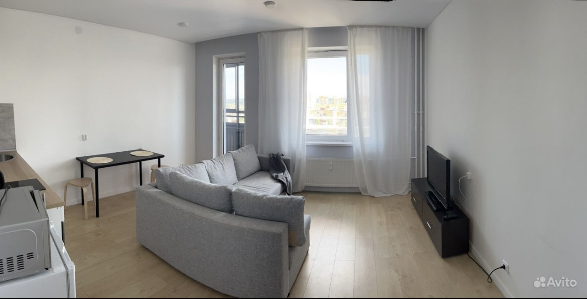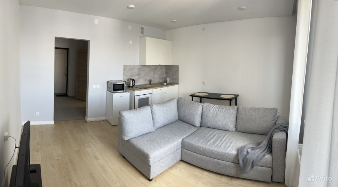 Сдаётся студия в ЖК «Мой ритм» с современным ремонтом, только на длительный срок.  Полностью готова для комфортного проживания, с мебелью и бытовой техникой (холодильник, микроволновка, чайник, вытяжка, электроплита, духовой шкаф, телевизор, стиральная машина). Охраняемая территория, закрытый, тихий двор, без машин, отличная транспортная развязка, рядом остановки автобусов и трамваев, строится метро, в доме есть супермаркет, аптека, в шаговой доступности ТЦ Мегга.