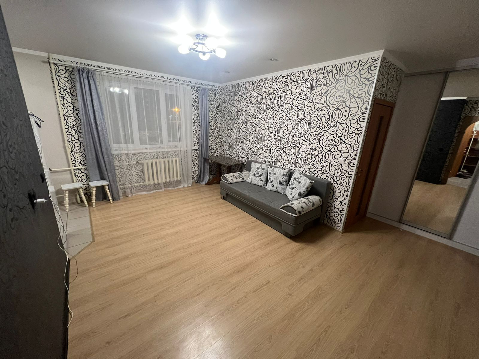 Сдаем квартиру с хорошим ремонтом,пластиковые окна, металлическая входная дверь гардиан, современный совмещенный санузел в кафеле с душевой кабиной,стиральная машина автомат, кухня объединена с залом, в зале большой диван, тумба под тв, и жк тв, на кухне хороший кухонный гарнитур, холодильник, плита стол стулья, в спальне диван,