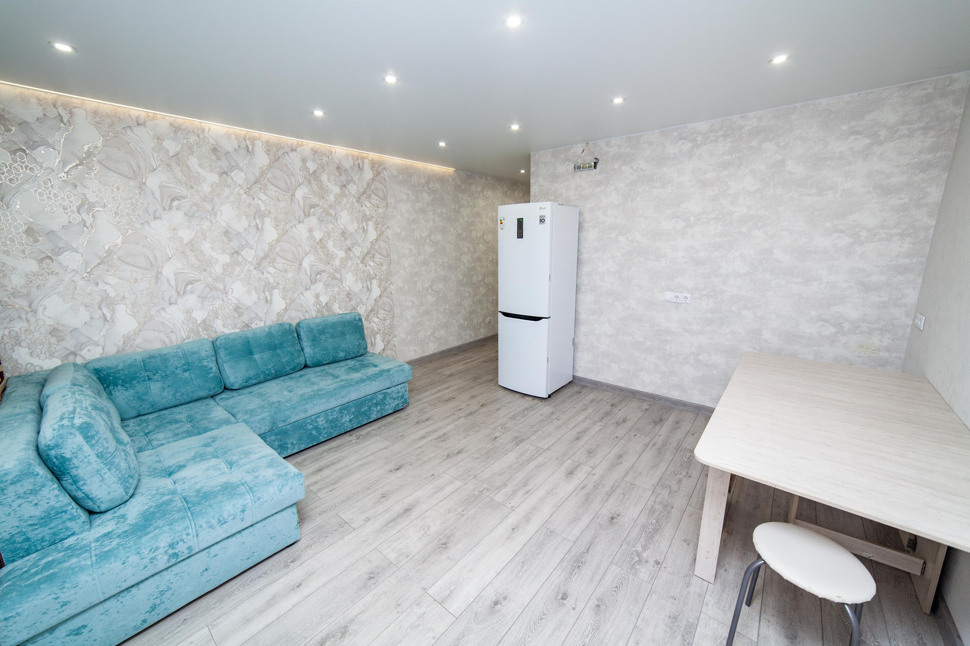 Имеется все необходимое для проживания: спальное место- большой раскладывающийся диван, новая техника- стиральная машина, холодильник, кухонный гарнитур (на фото нет).