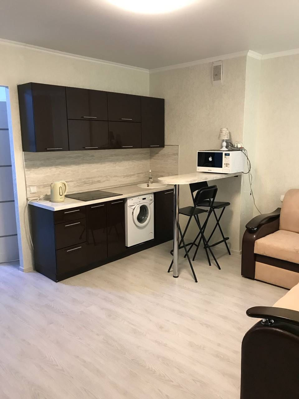 Студия укомплектована всей необходимой бытовой техникой и мебелью для Вашего идеального проживания .