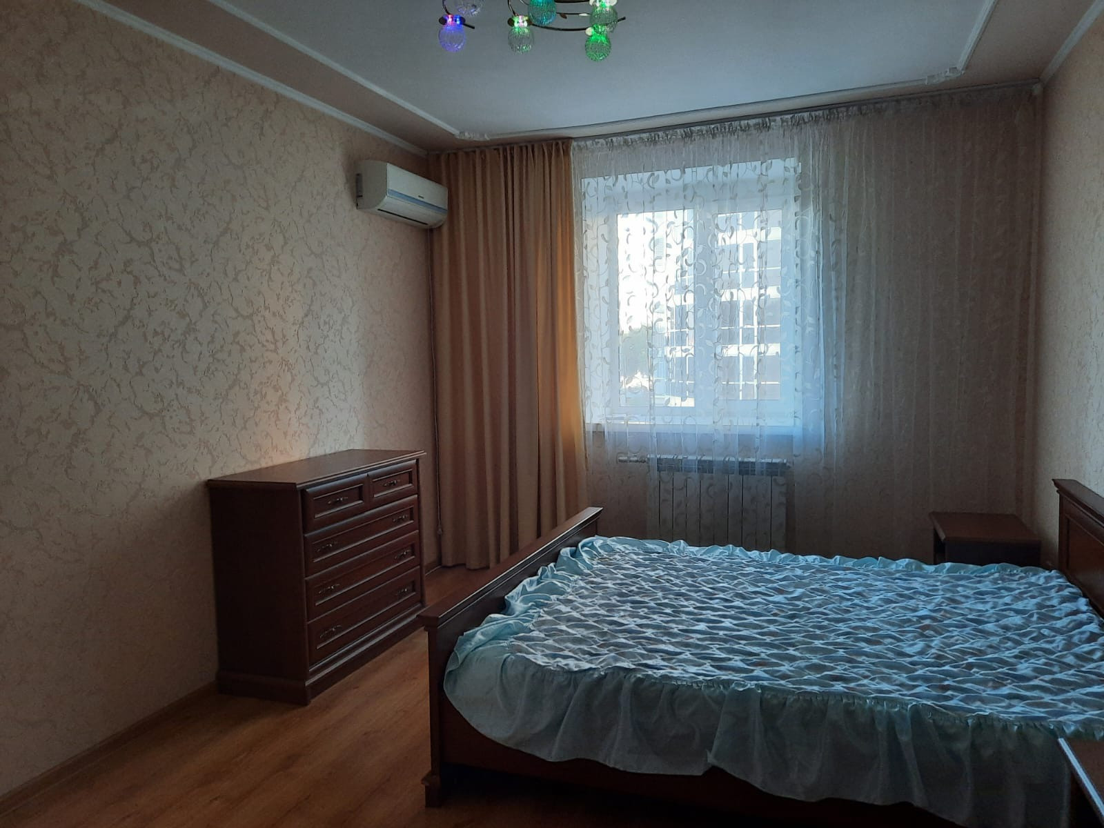 Сдаем квартиру на длительный срок , желательно семье, можно с детьми школьниками Квартира с индивидуальным отоплением Квартира полностью укомплектована для комфортного проживания В спальне полноценный спальный гарнитур, кондиционер , в зале угловой диван, стенка горка , большой письменный стол для учебы Санузел совмещен в кафеле , большая угловая ванная , стиральная машина автомат Кухня также полностью укомплектована: гарнитур, встроенная техника ( варочная панель , духовой шкаф, вытяжка, холодильник, микроволновая печь, стол стулья Огромная лоджия Залог 10