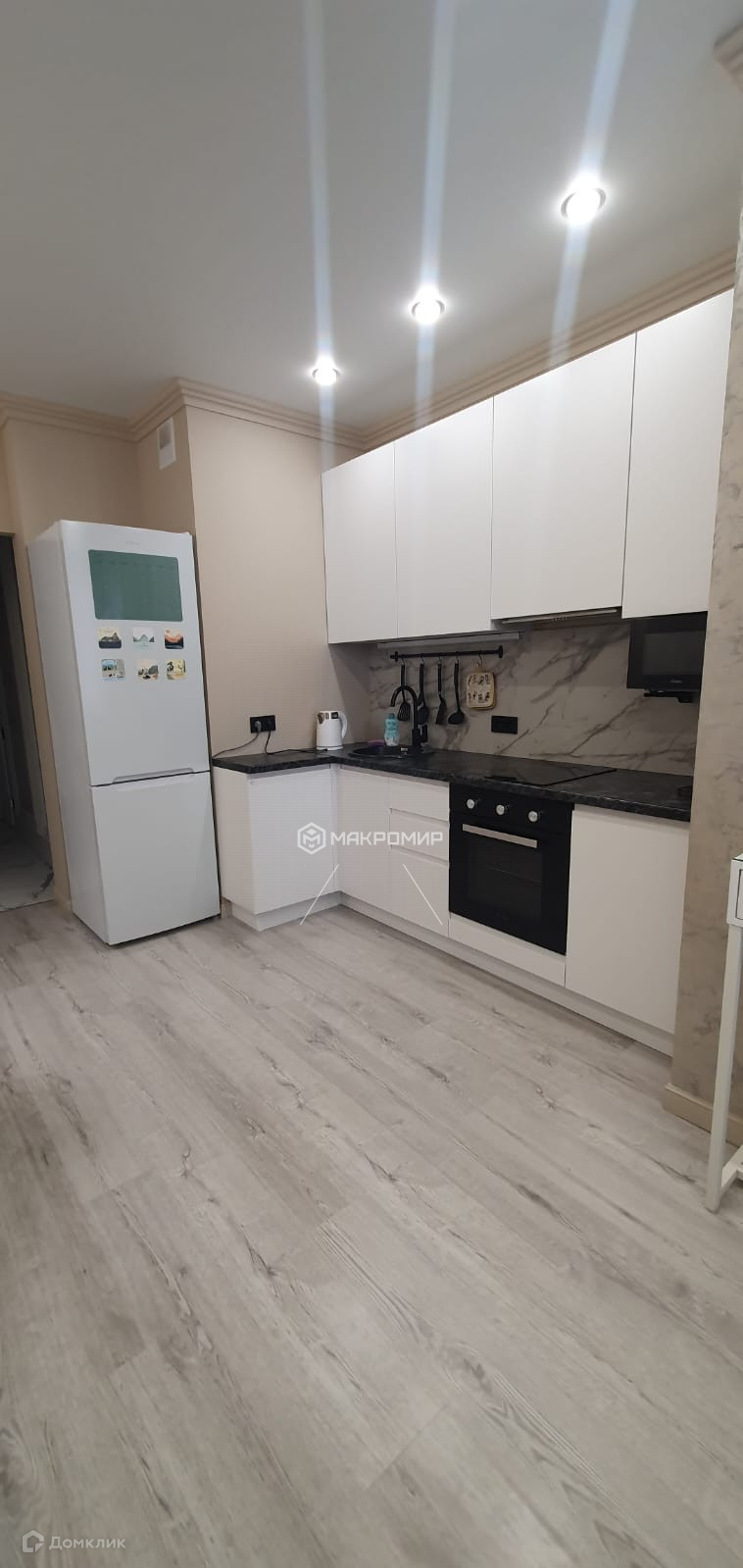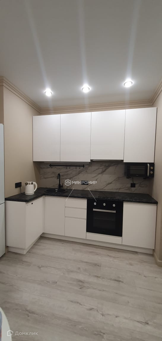 микроволновка, плита с духовкой,вытяжка, электрический чайник, телевизор, большой холодильник,стиральная машина .