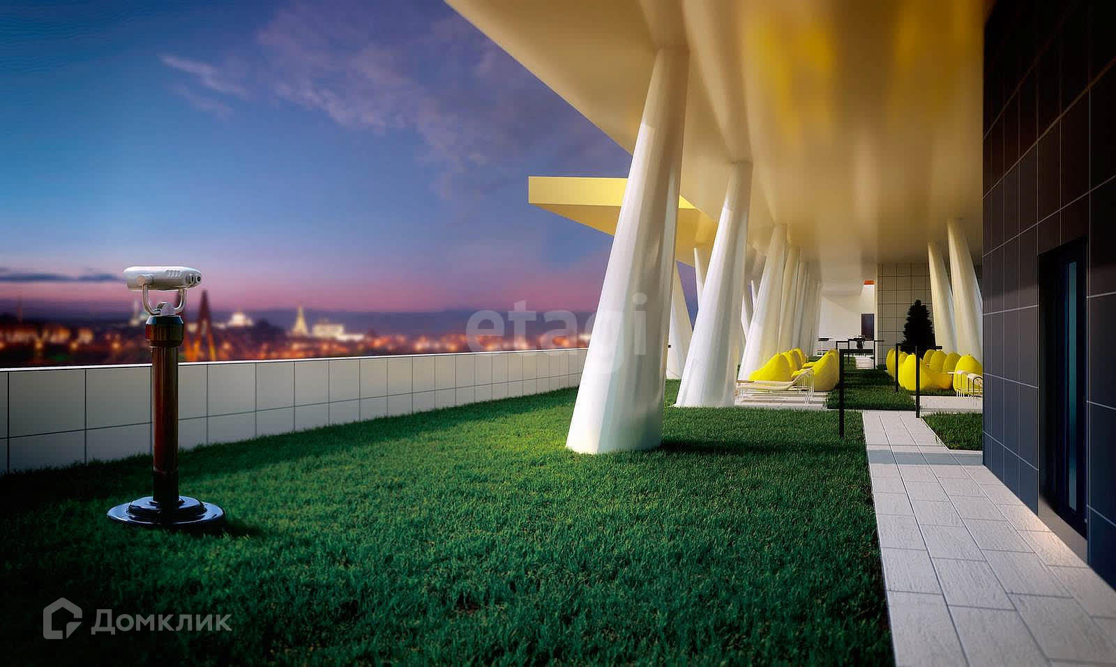 -В ЖК имеется: парк на крыше дома (где по утрам можно делать зарядку, и днем работать с панорамным видом на Казань и все достопримечательности города, а в выходные с утра проходит йога и вечером просмотр фильмов на проекторе с соседями), подземная парковка, в лобби: консьерж, колясочная и гостевая зона с диванами, столами, тв, детским столиком. На территории ЖК так же расположены: зона отдыха, детская игровая площадка, тренировочная зона и велопарковка.