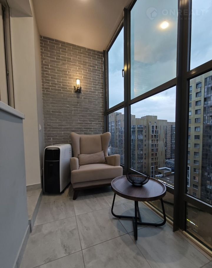 Очень уютная лоджия, с креслом для отдыха и подсветкой
