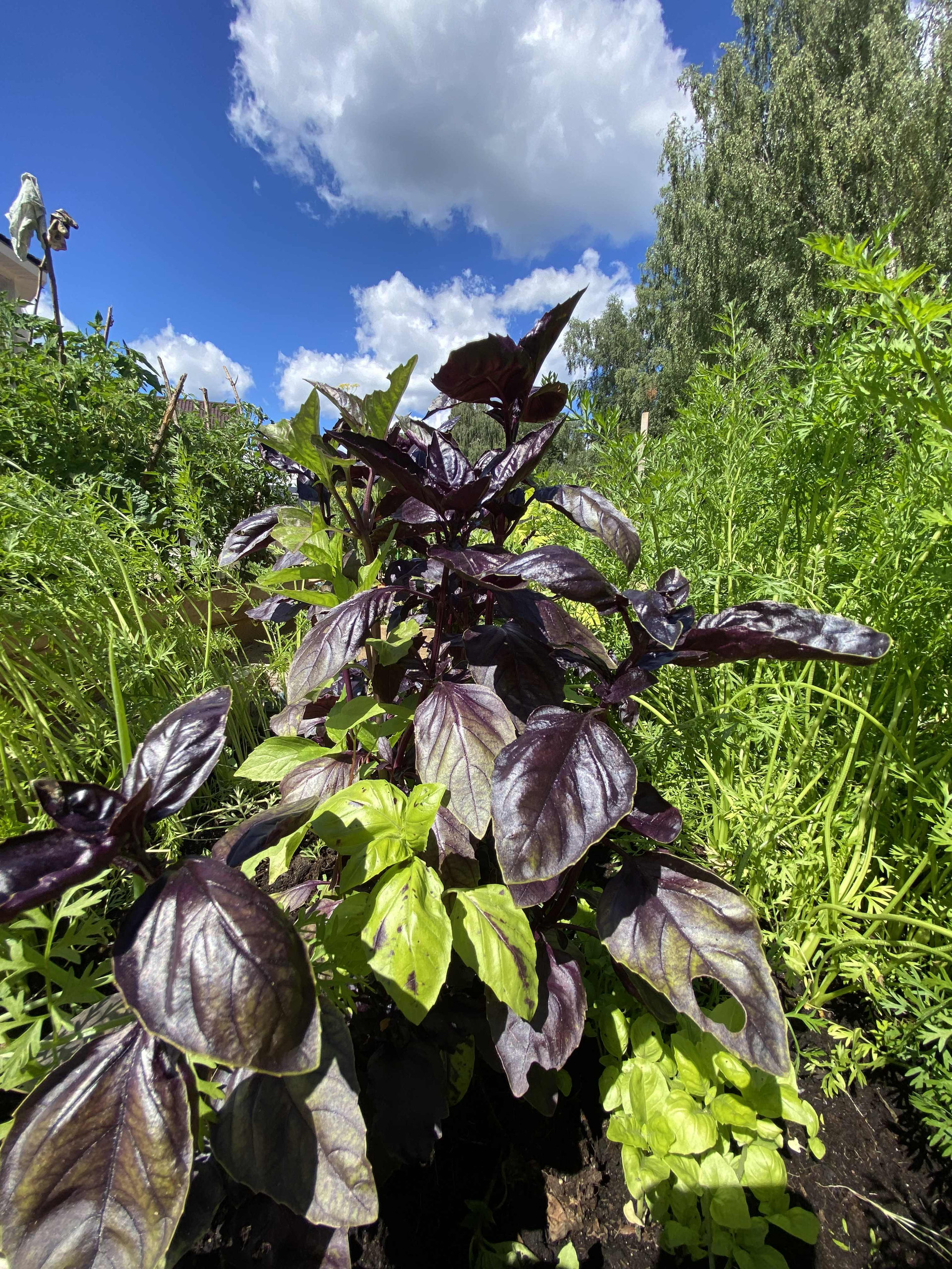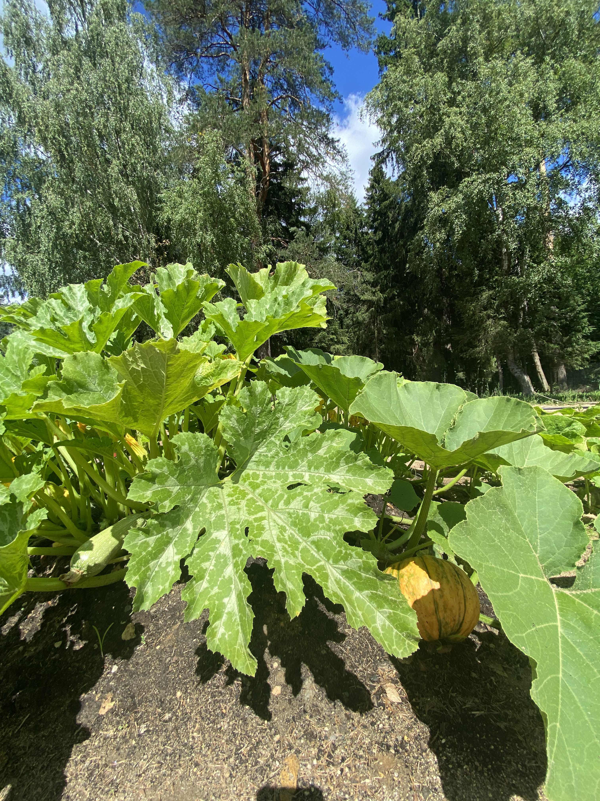 На участке высажены яблони, груши, черешня, смородина, малина, крыжовник, клубника, голубика, чеснок, лук, розы и туя.