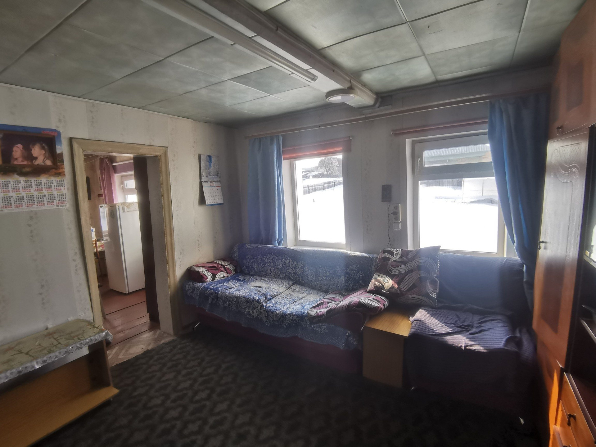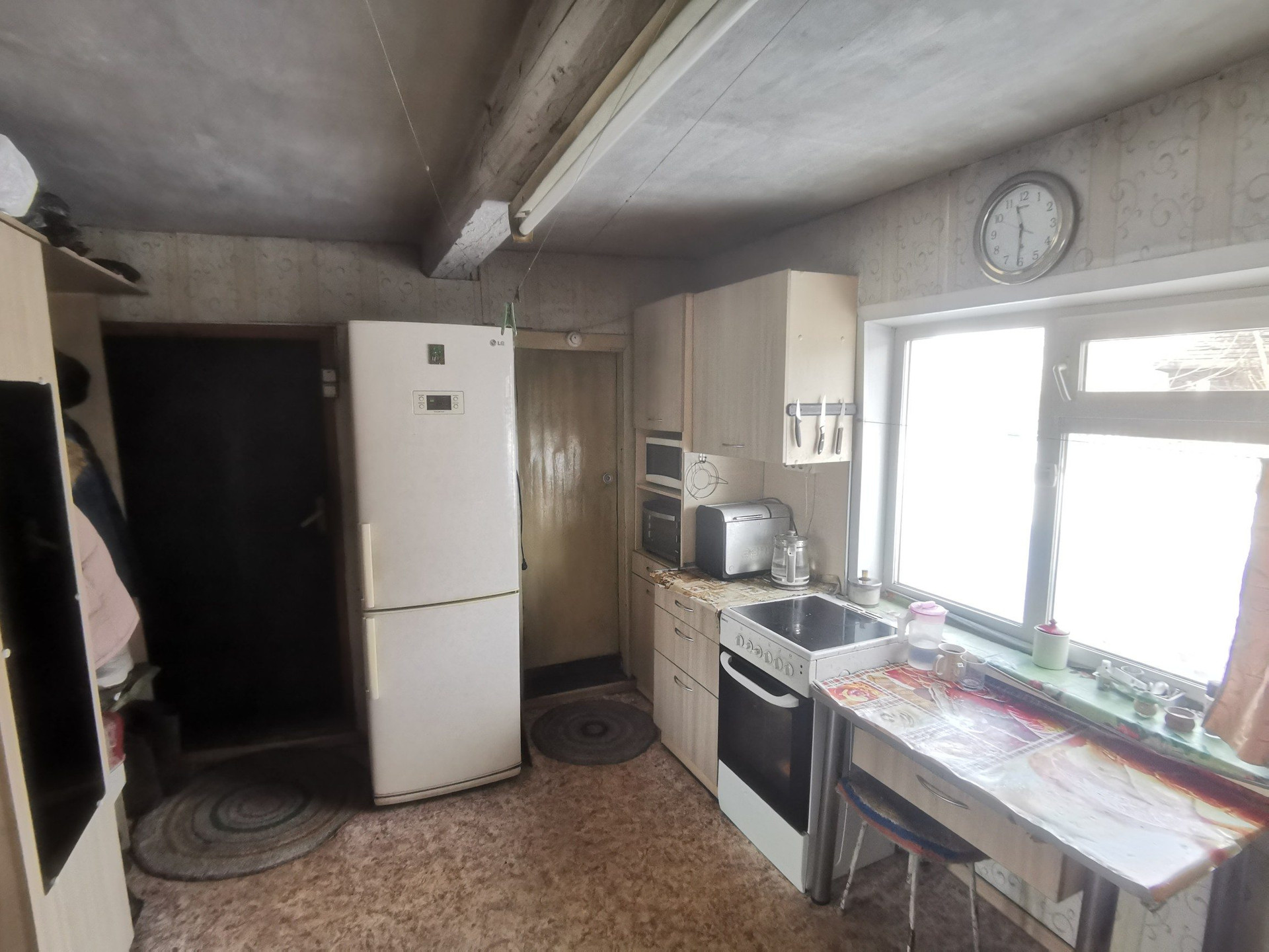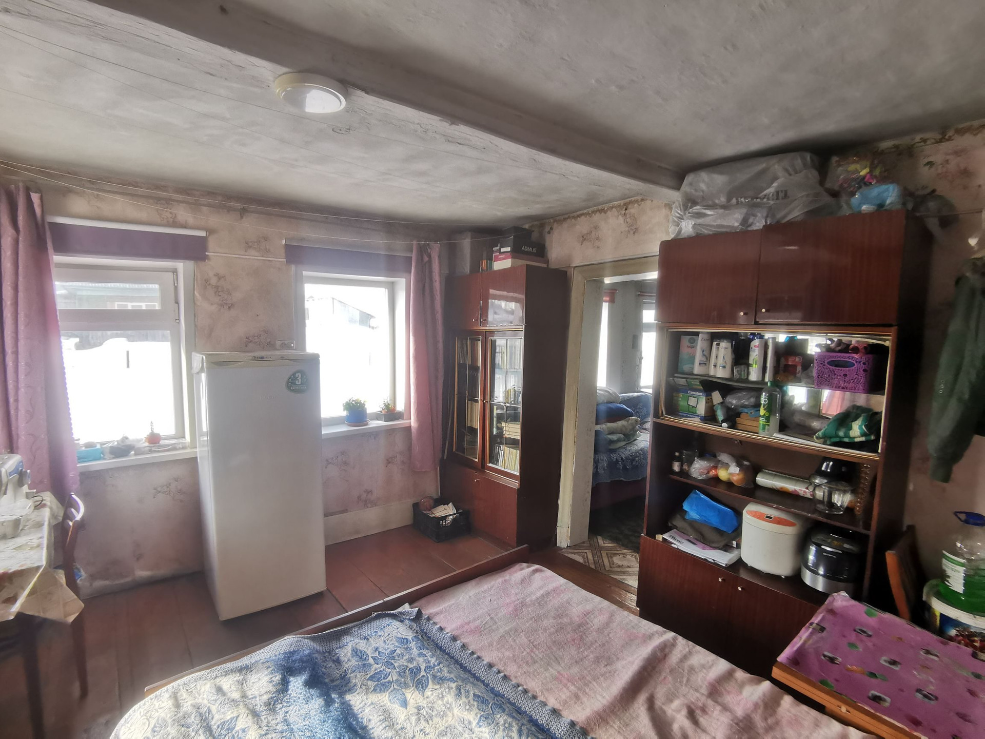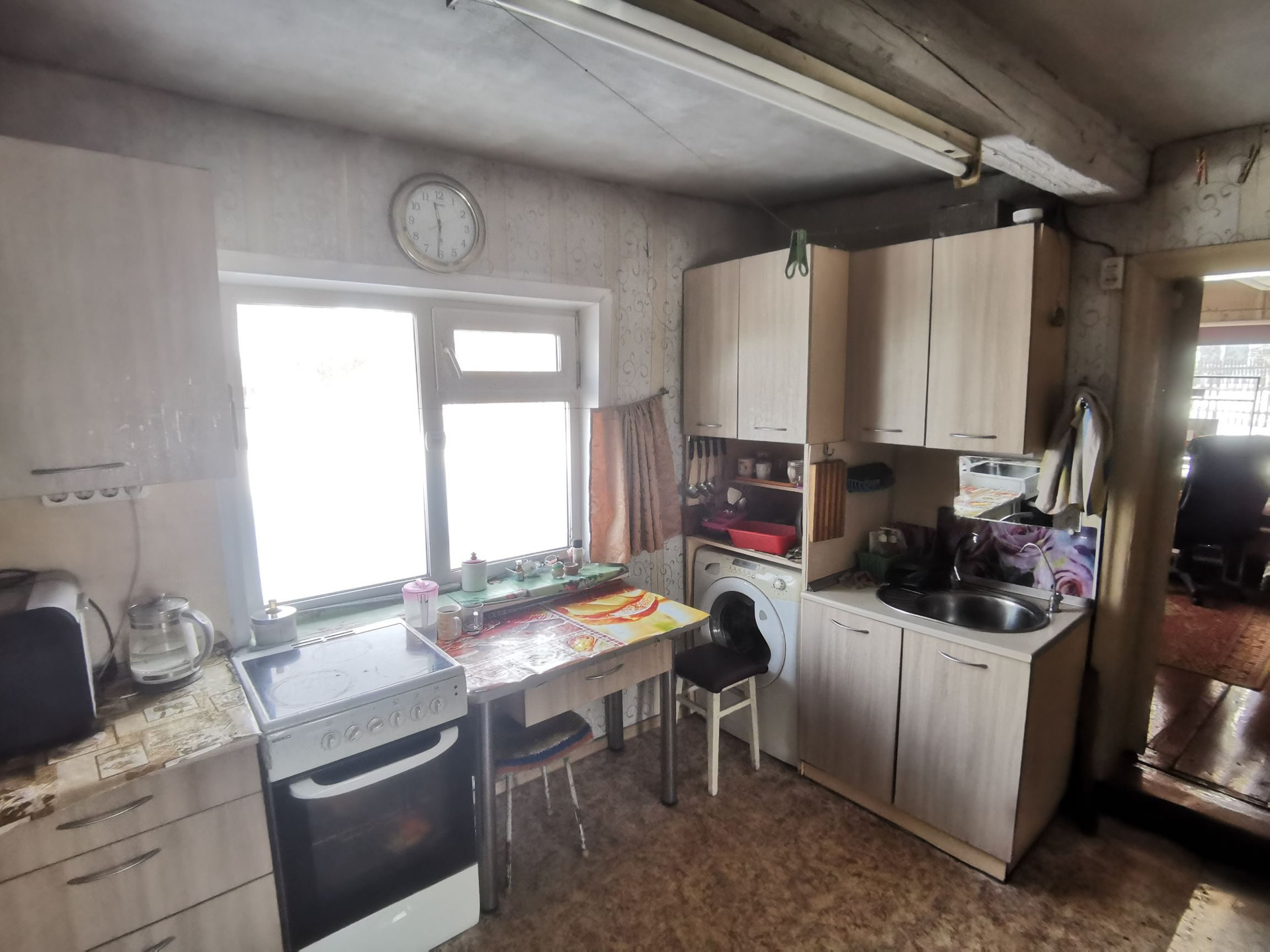Общая площадь 48,5 кв.м. 2 спальни, гостиная, кухня. Подготовлено помещение для санузла. На всех окнах установлены стеклопакеты. Отопление печное-водяное, есть водонагреватель, вода холодная централизованная, канализация -выгребная яма.