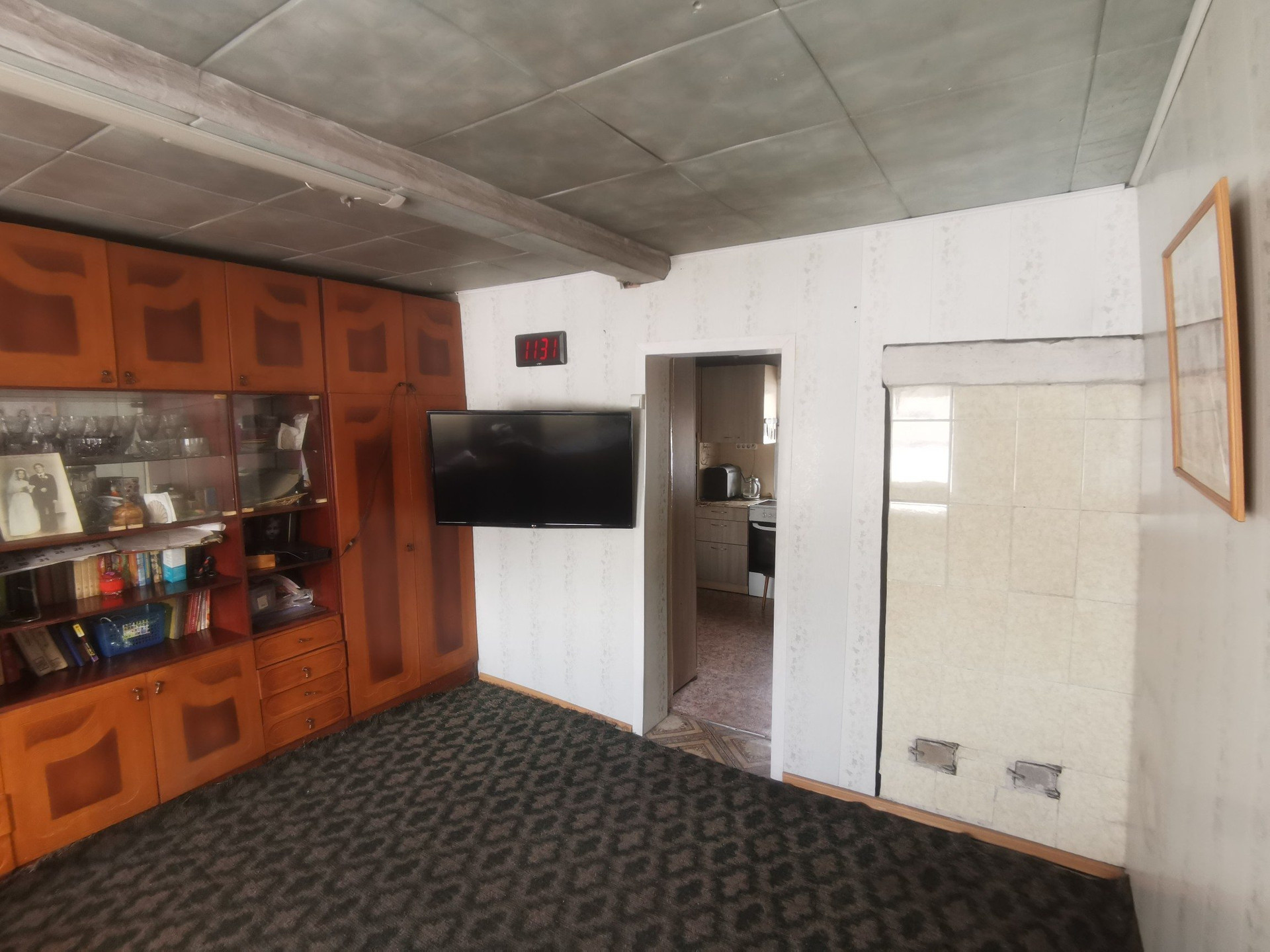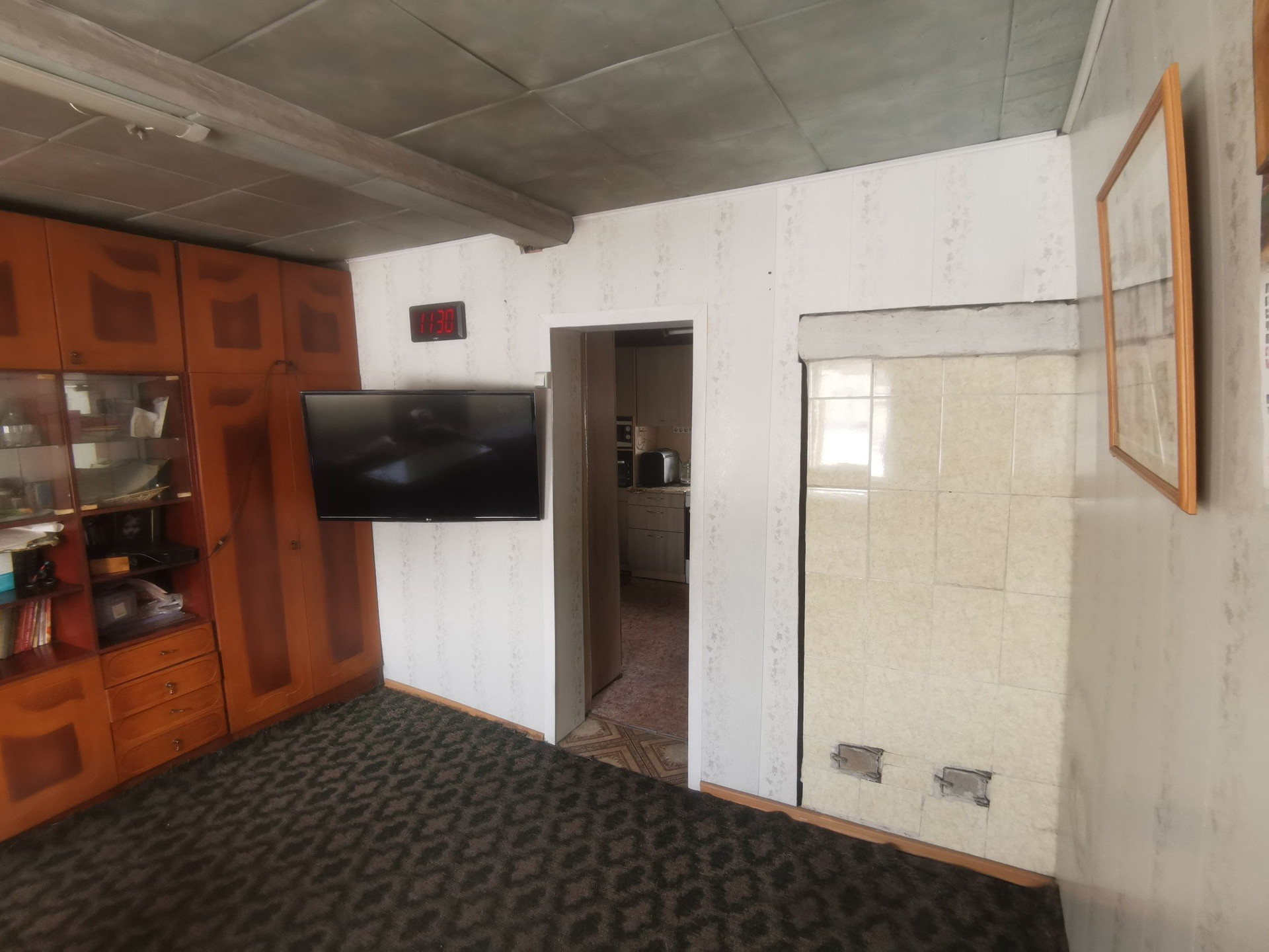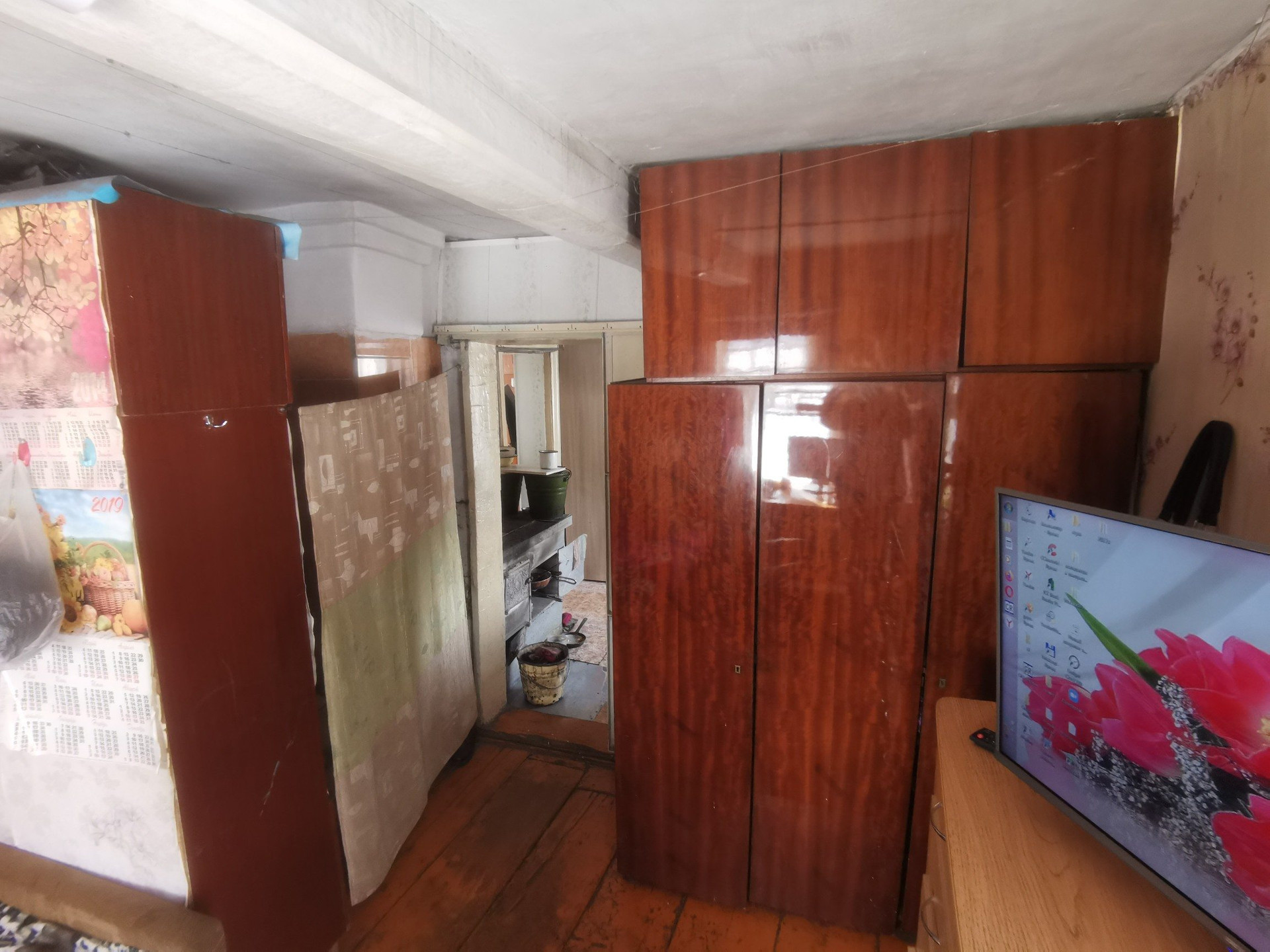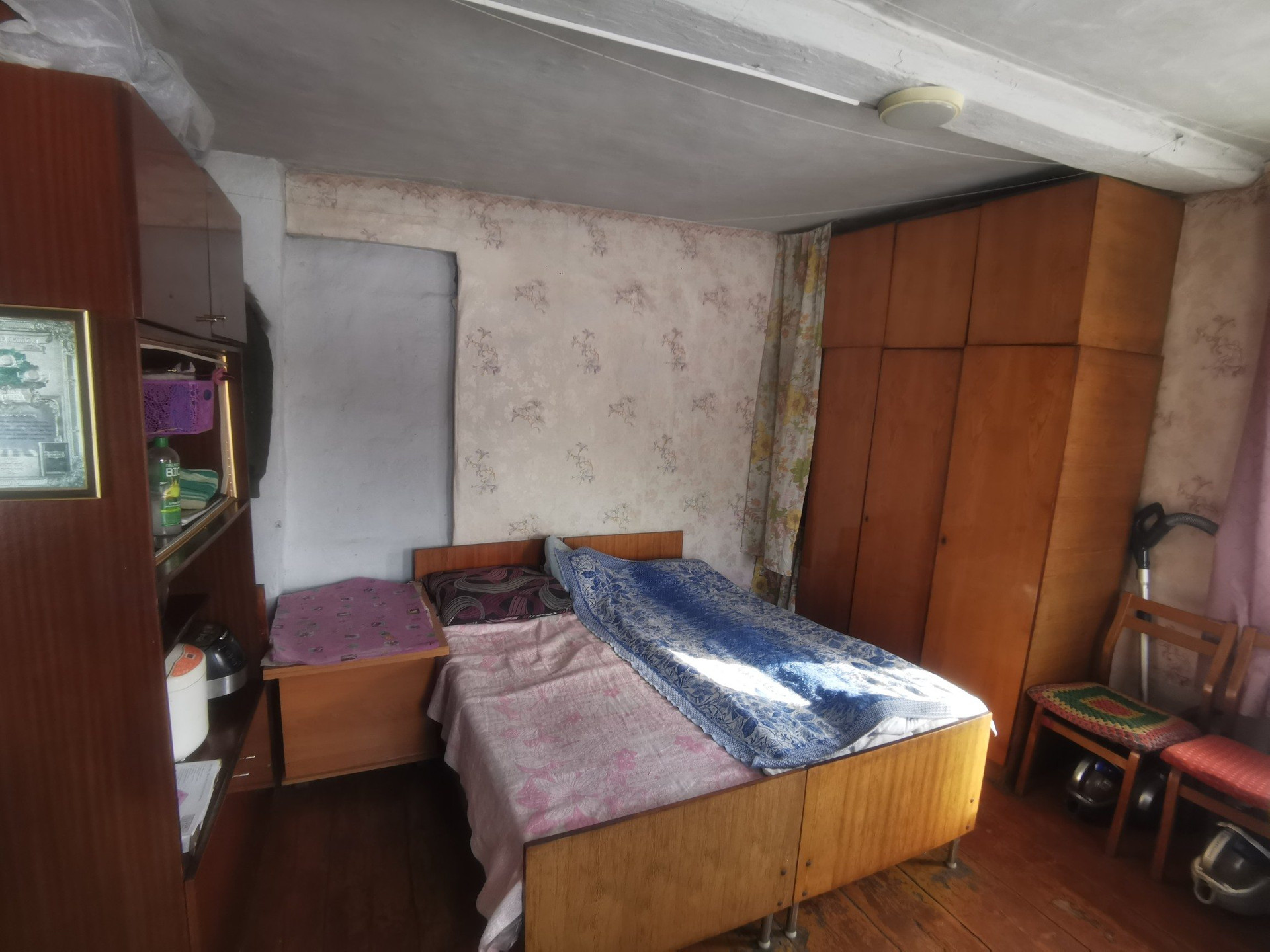 Общая площадь 48,5 кв.м. 2 спальни, гостиная, кухня. Подготовлено помещение для санузла. На всех окнах установлены стеклопакеты. Отопление печное-водяное, есть водонагреватель, вода холодная централизованная, канализация -выгребная яма.