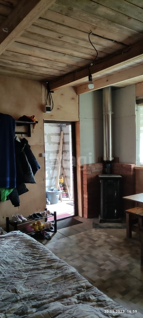 В доме новая, отличная дровяная печь. Остаются диван, холодильник, кровати остаются.