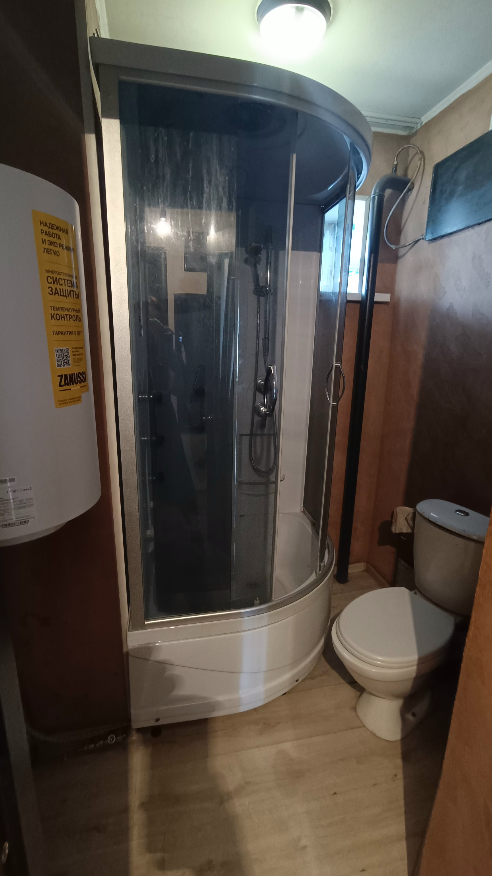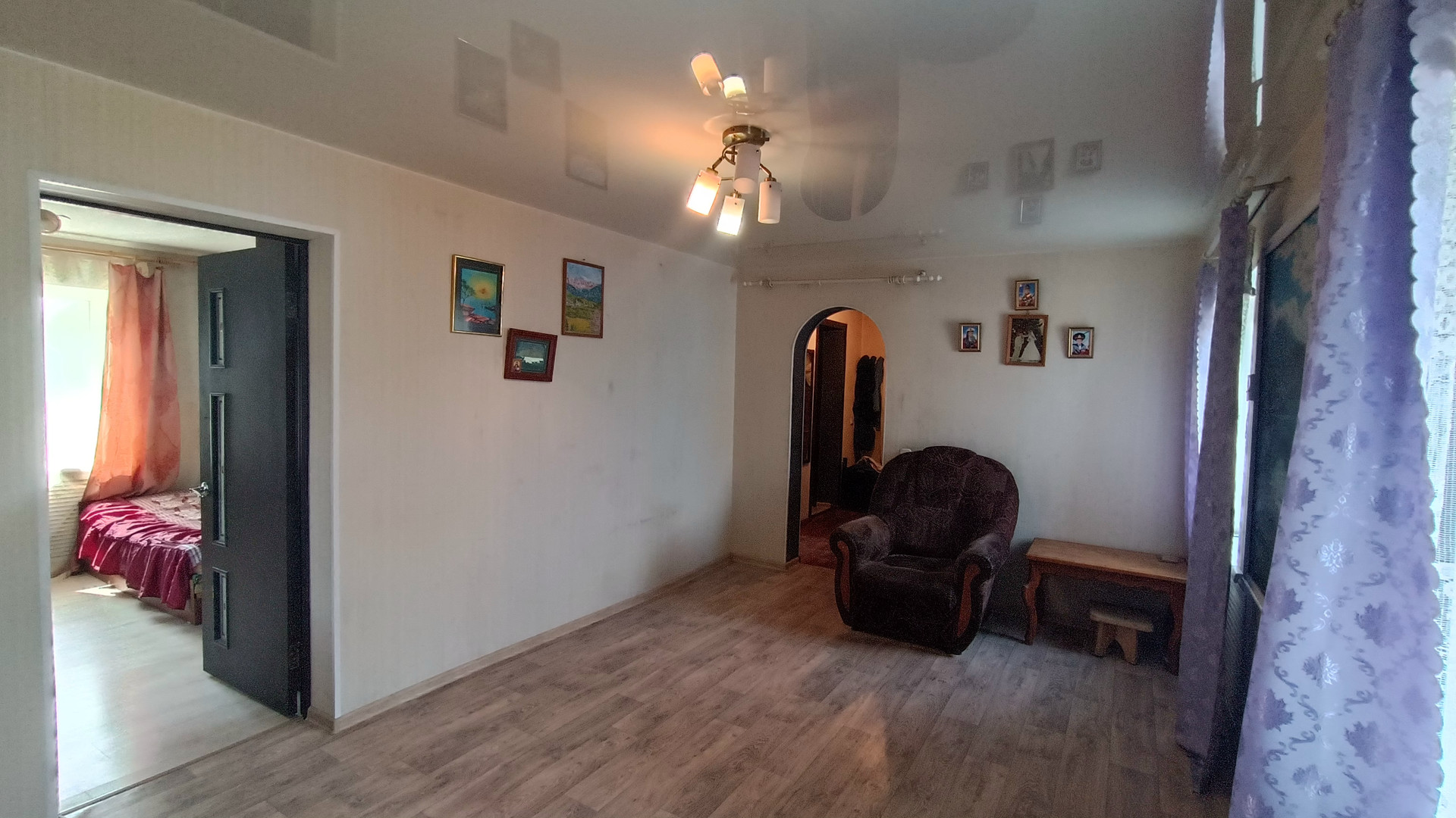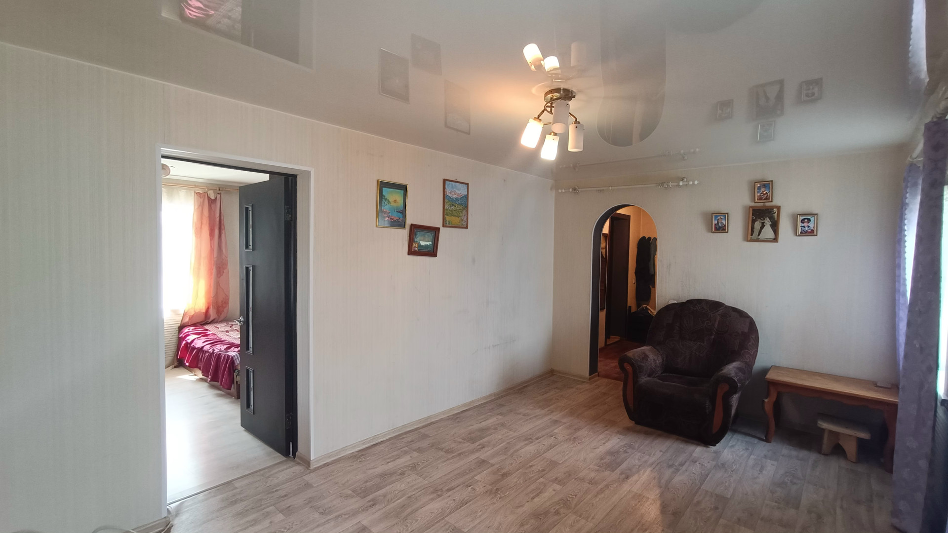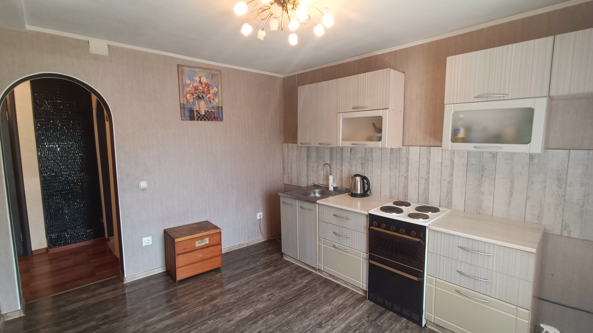 Произведен ремонт с заменой электропроводки, установлены пластиковые стеклопакеты, натяжные потолки.В санузле установлена душевая кабина и новый бойлер.