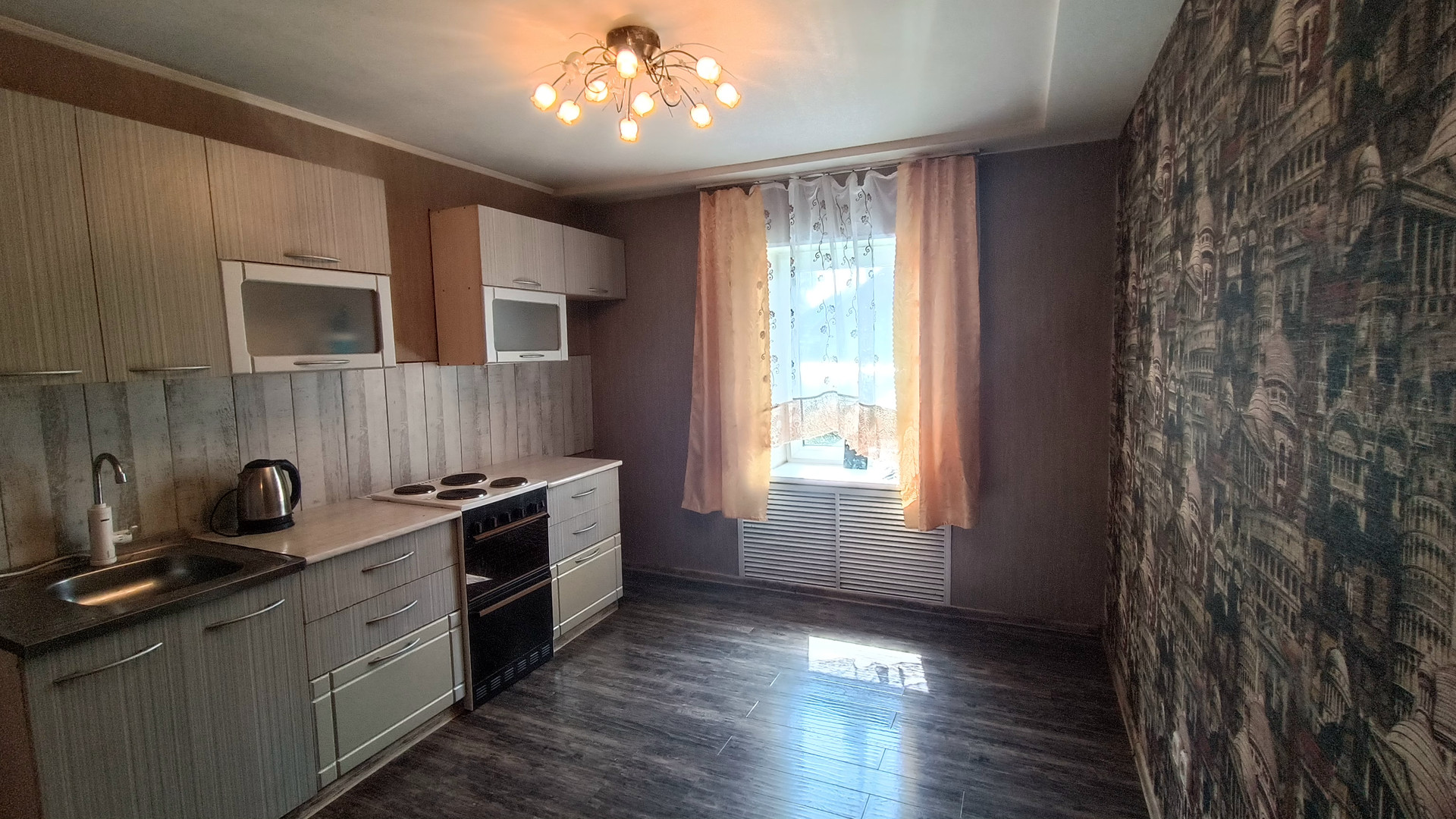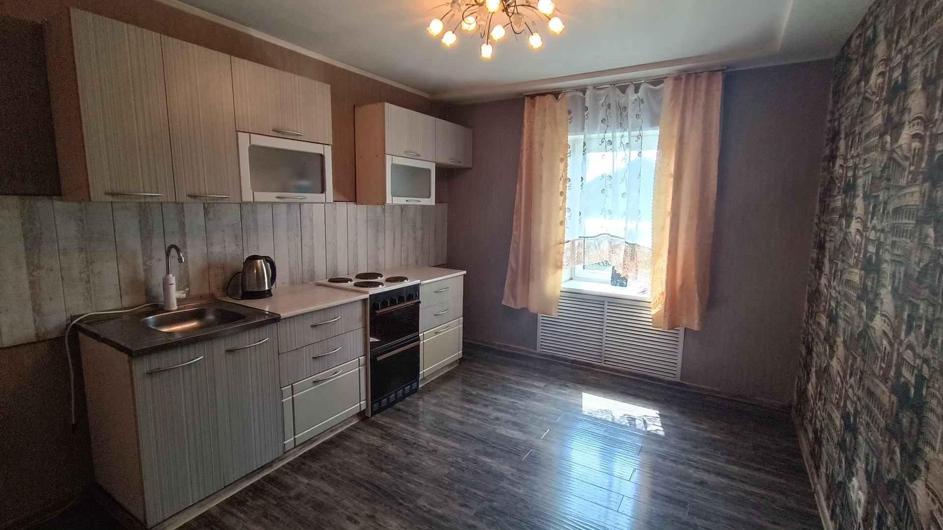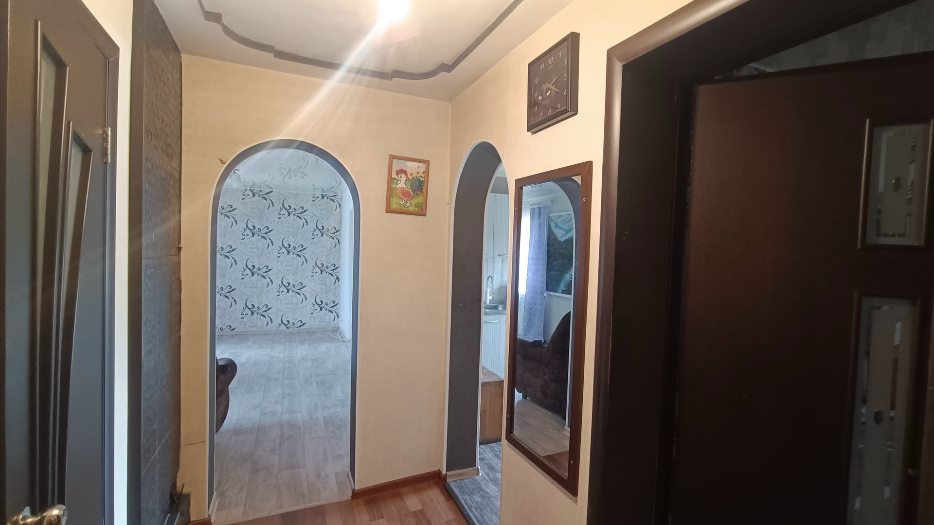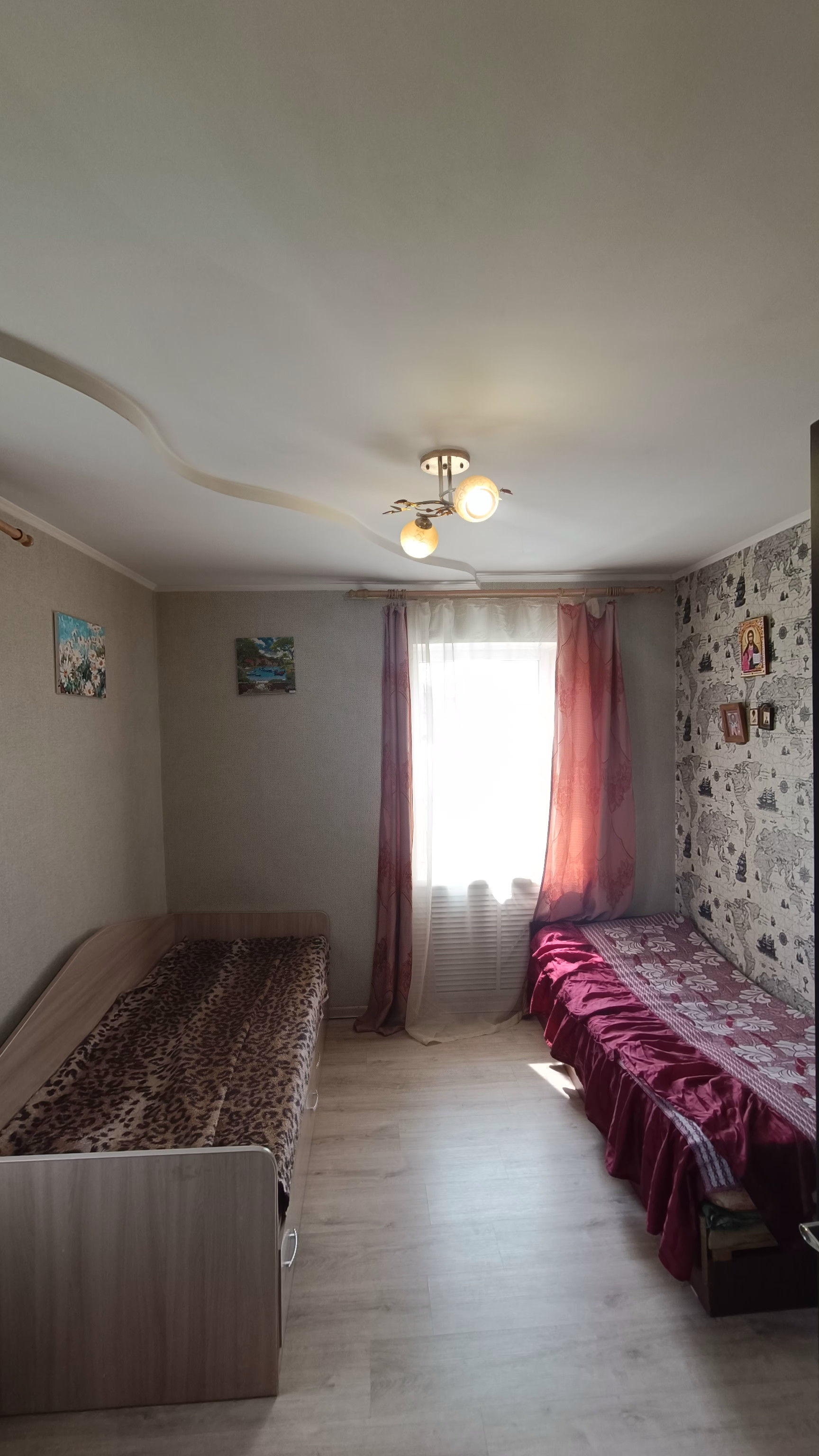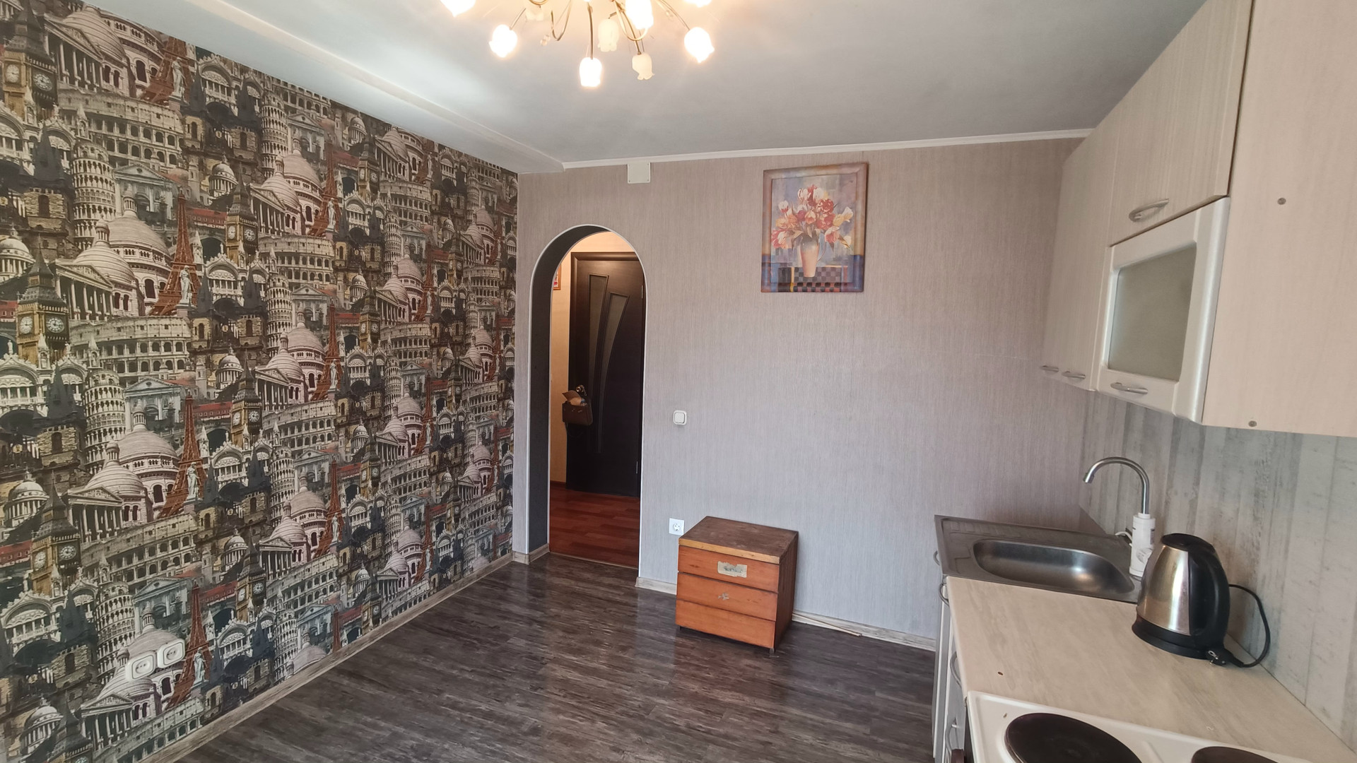 Произведен ремонт с заменой электропроводки, установлены пластиковые стеклопакеты, натяжные потолки.В санузле установлена душевая кабина и новый бойлер.