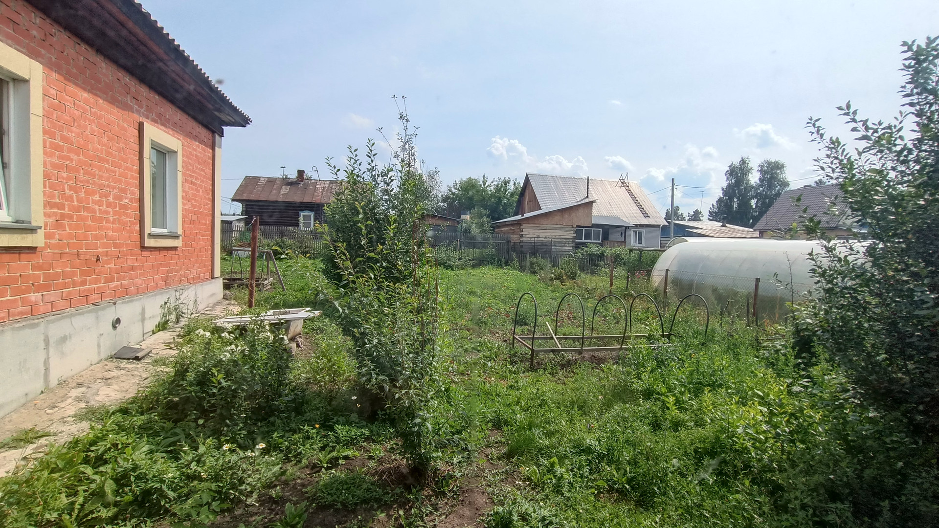 Земельный участок 5 соток, ухоженный и ровный, на территории расположены гараж, баня, 2 погреба, хоз.помещения для хранения дров и садового инвентаря. Растут плодово-ягодные кустарники(яблоня, слива, черешня ,смородина, малина ,крыжовник).
