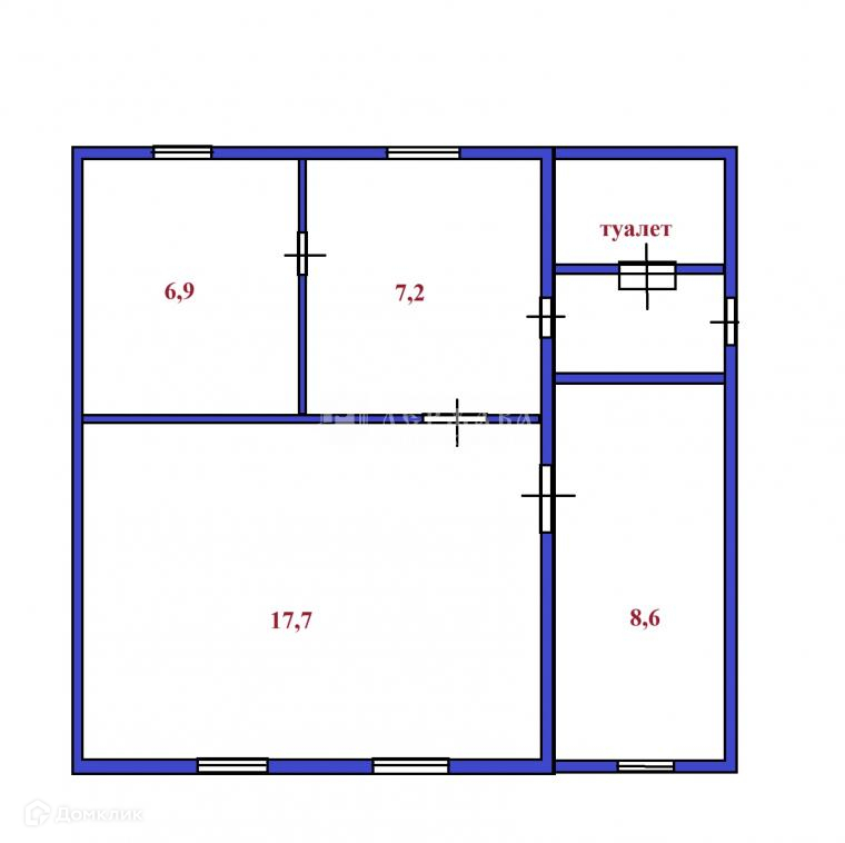 Жилой дом 44,9 кв.м. состоит из 3 комнат, (см. планировку) , в доме обустроен туалет, подведено водоснабжение и водоотведение. Отопление водяное, котел выведен в сени. Участок 7соток в собственности, на данный момент выполняется межевание для возможности покупки в ипотеку.