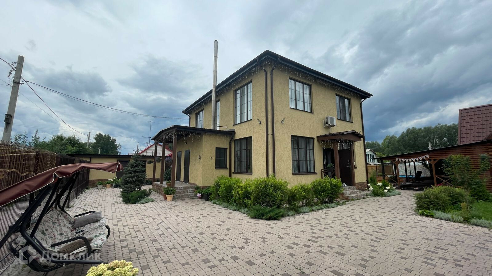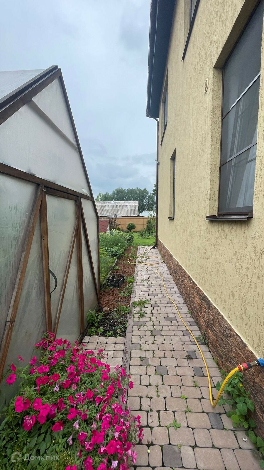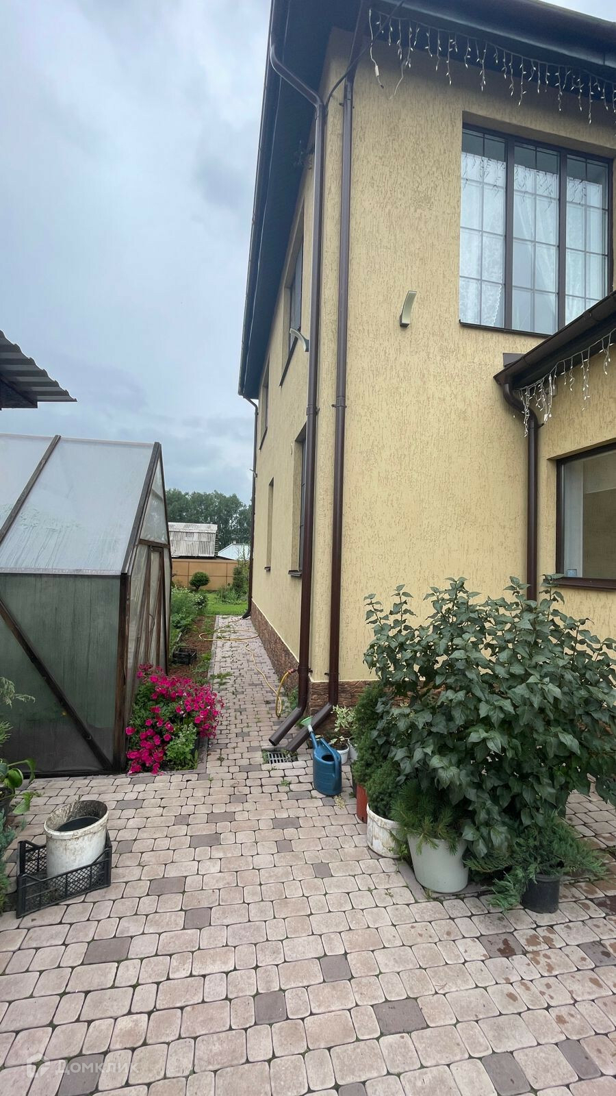 Территория дома ухожена, двор выложен качественной брусчаткой, система водоотведения не оставляет луж после дождя и таяния снега.