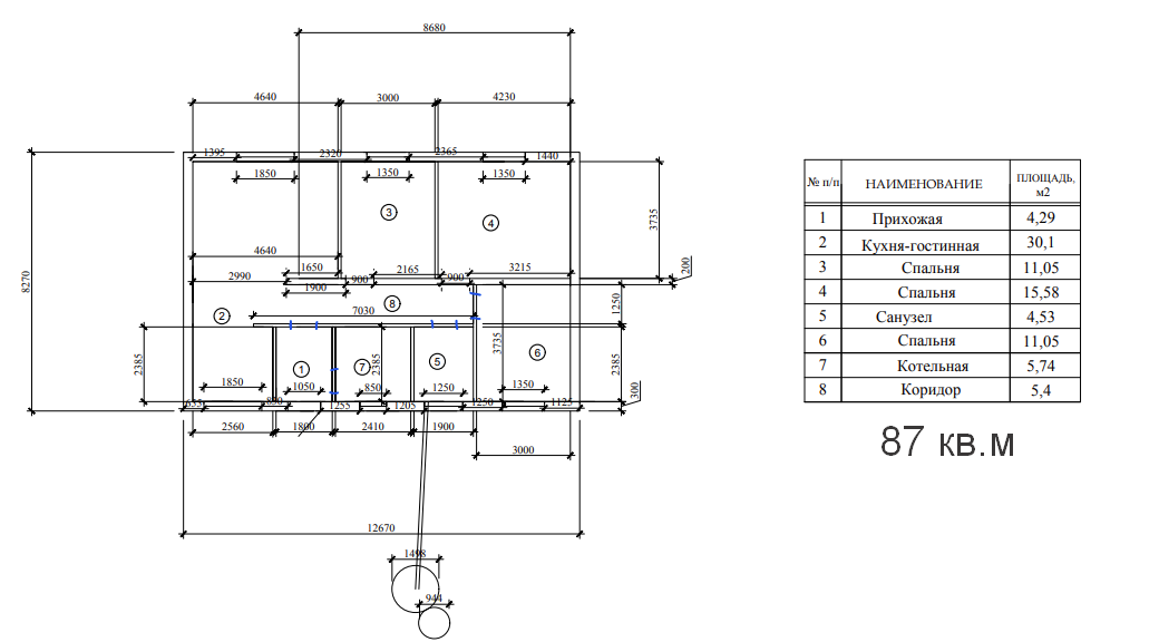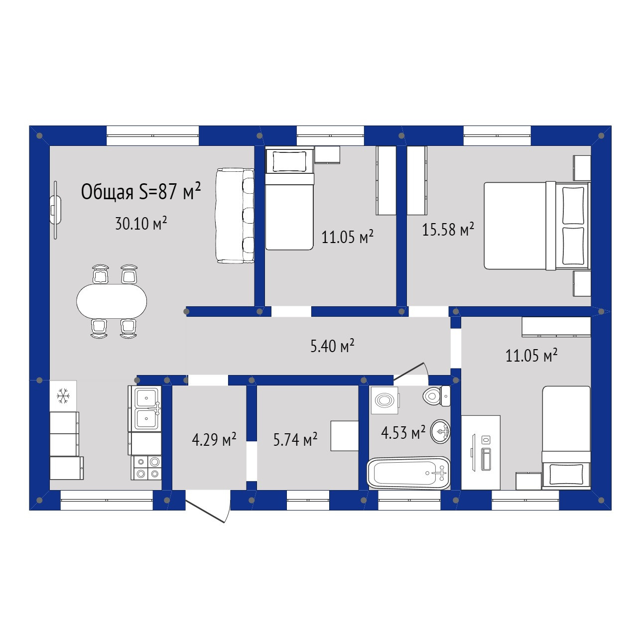 Общая площадь 87 м2