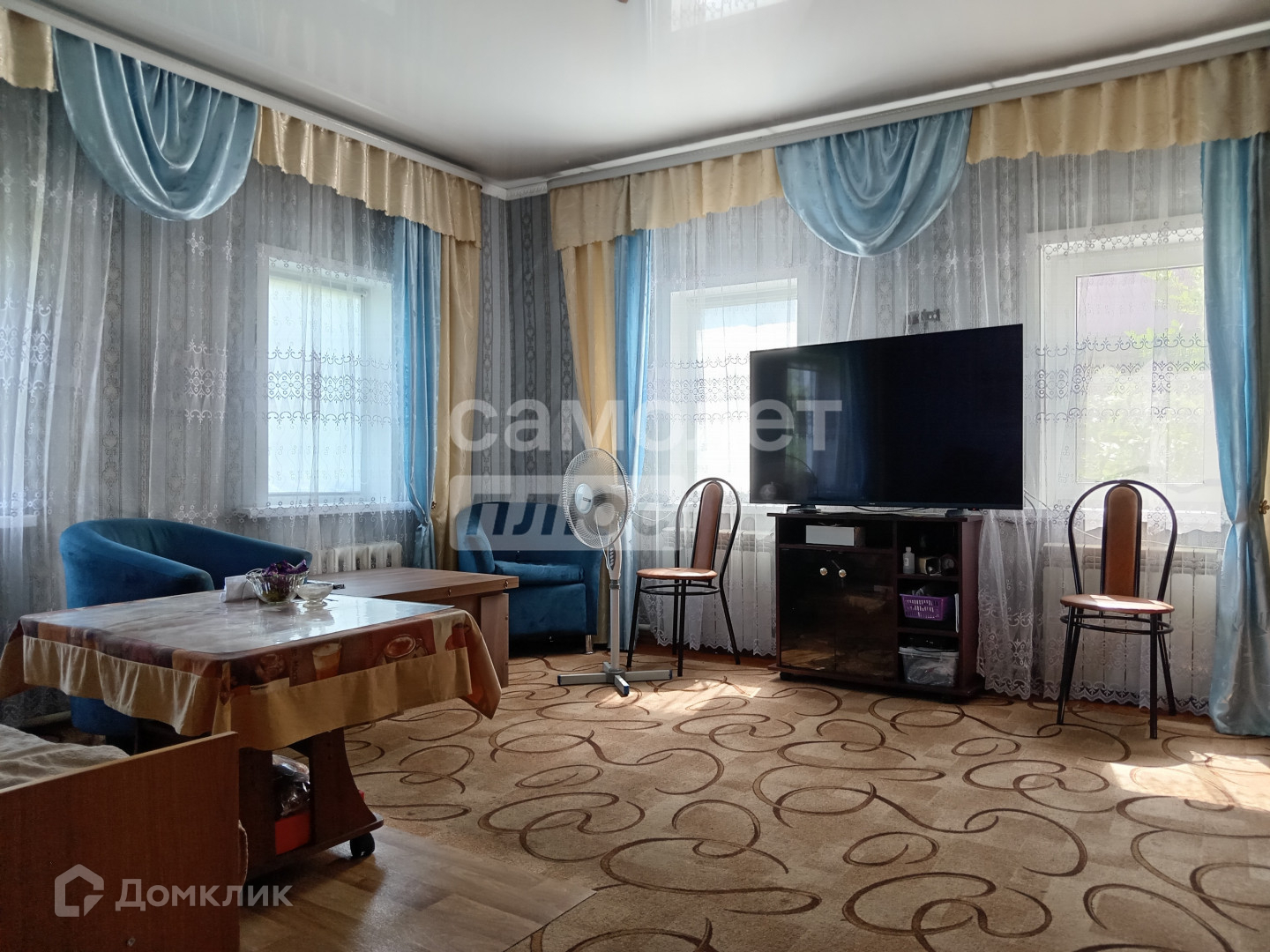 Просторная светлая гостинная, 3 жилых комнаты, котельная и кухня.