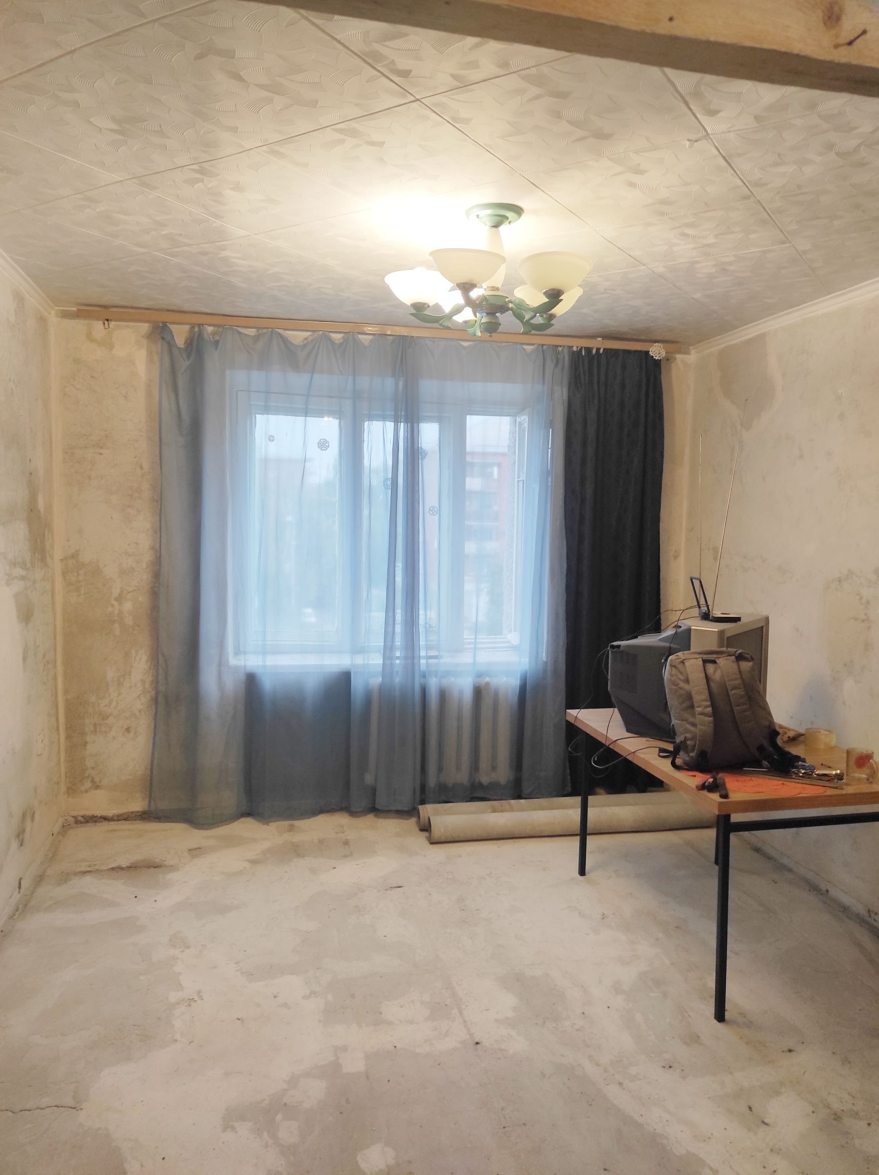 Подготовлена к ремонту, благодаря этому вы можете создать свой уютный интерьер. Сан.узел на 2 комнаты, вода выведена в комнату,  есть возможность установить унитаз, ванну/душевую кабину.