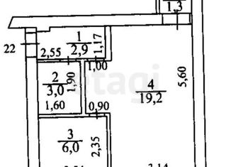 Общая площадь: 22.6 м2