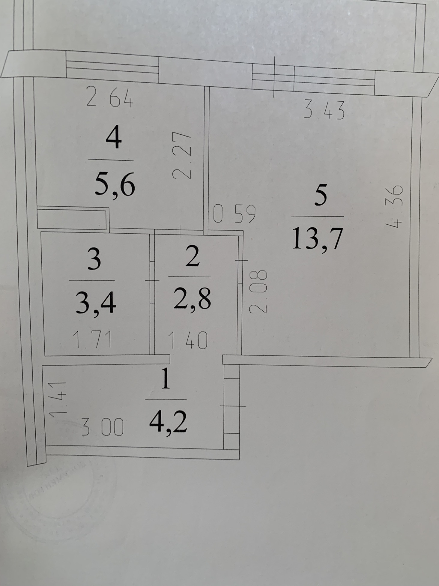 Общая площадь 29.7 м2