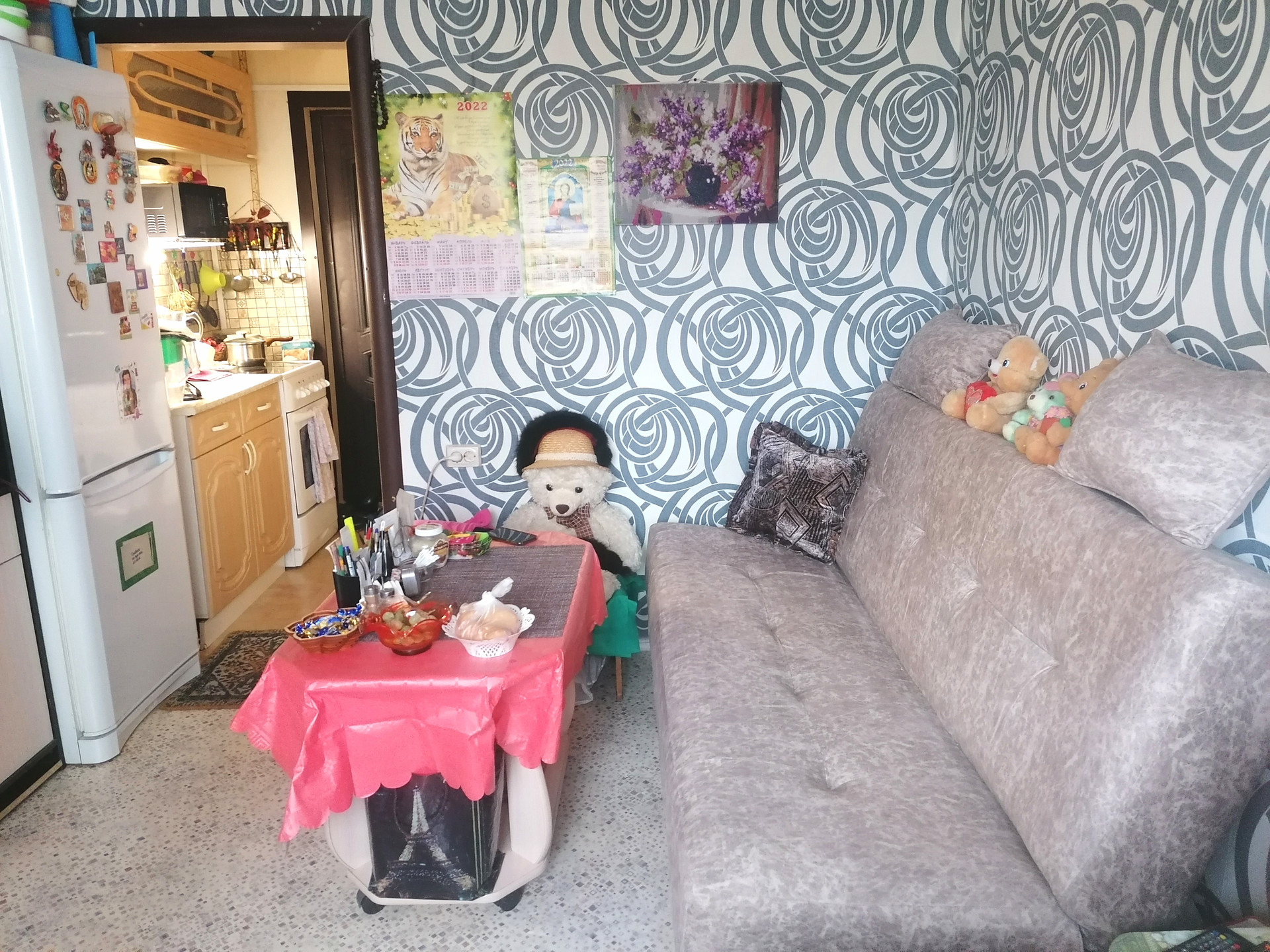 Квартира общей площадью 16.5 кв.м, жилой 12кв.м, санузел  совмещённый. Состояние хорошее. Светлая, теплая, ухоженная. Потолки везде натяжные, стены обои, пол линолеум.
