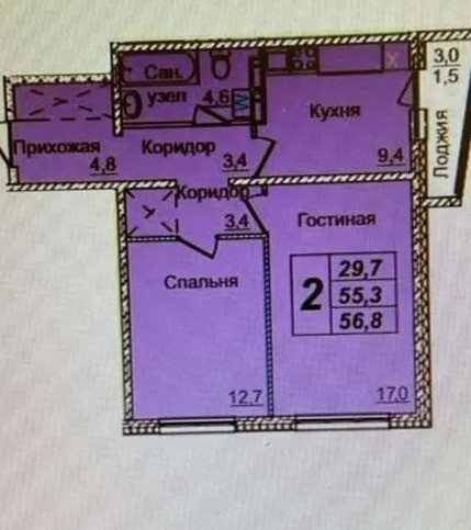 Жилая площадь 47.4 м2