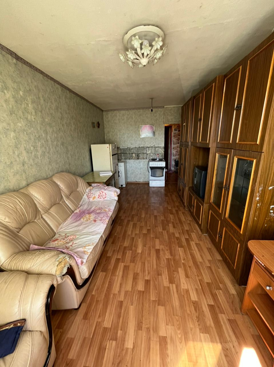Жилое  состояние, выполнен свежий косметический ремонт, натяжные потолки, входная железная дверь, линолеум, санузел совмещен, пластиковое окно. Комната светлая, уютная. Окно во двор.