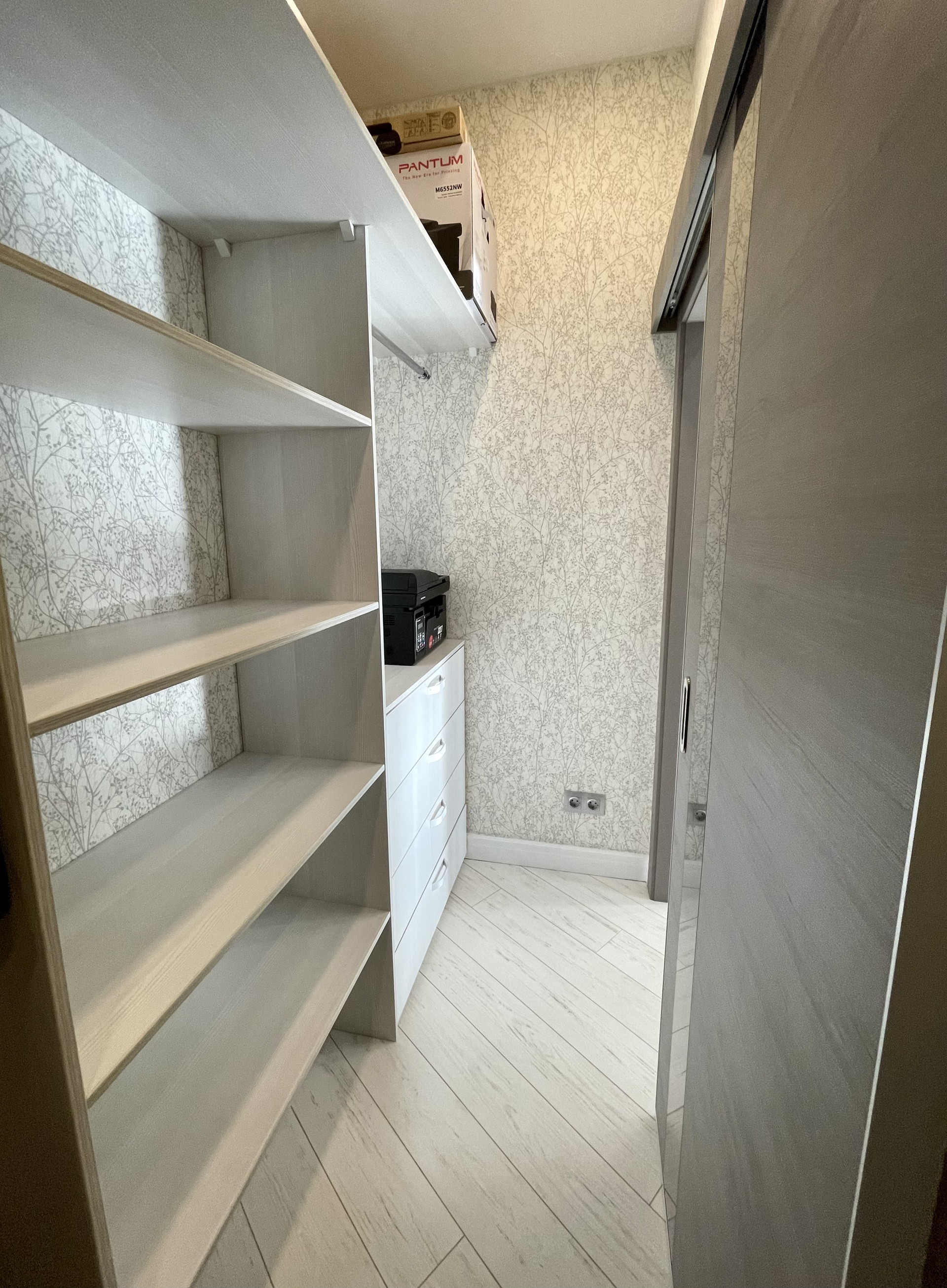 Отдельного внимания заслуживает просторная гардеробная 4 кв.м., так же имеются встроенные шкафы в спальне и прихожей.