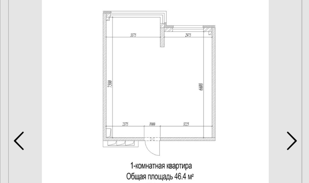 Общая площадь 46.4 м2