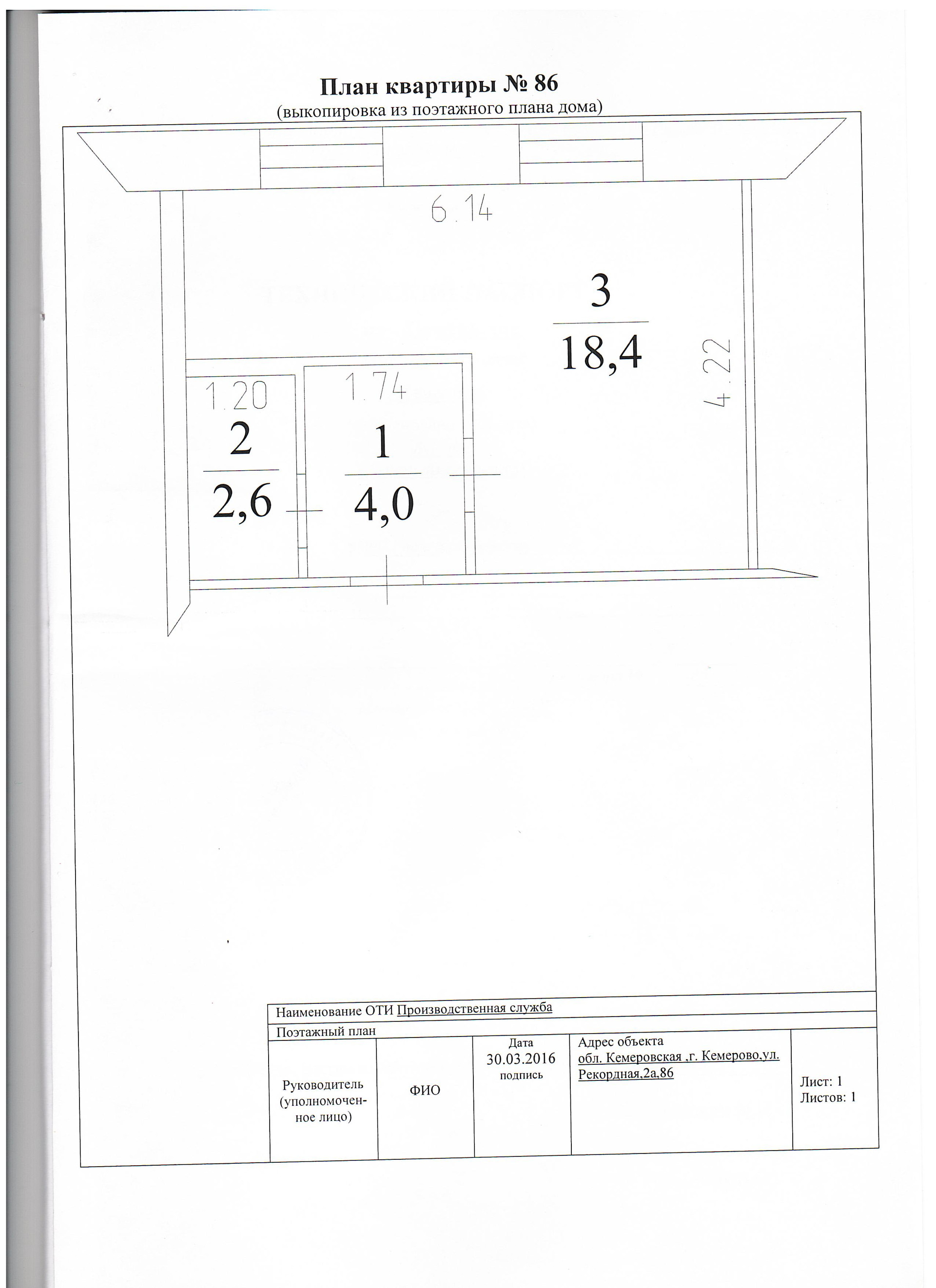 1-комнатная квартира, 25 м2, этаж 3 / 5, на продажу в Кемерово, Рекордная улица, 2А