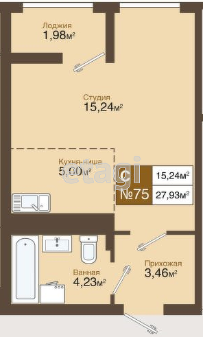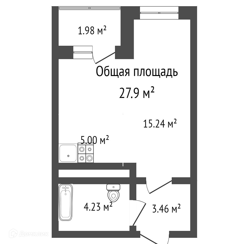 Общая площадь 27.9 м2