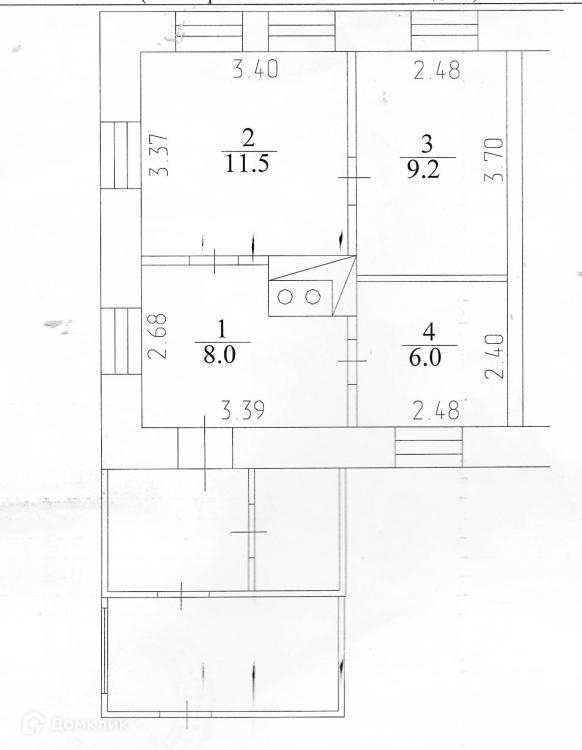3-комнатная квартира, 34.7 м2, этаж 1 / 1, на продажу в Кемерово, Загорская улица, 7А