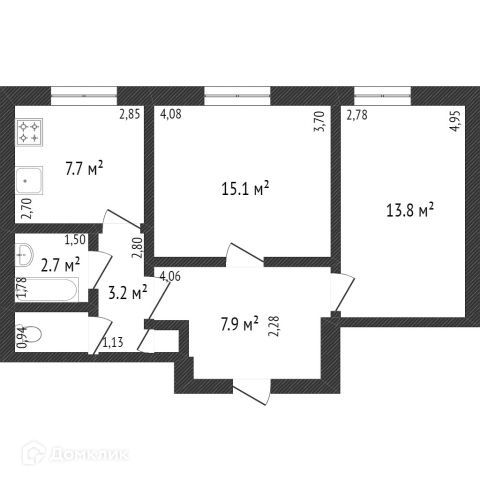 Общая площадь 51.7 м2