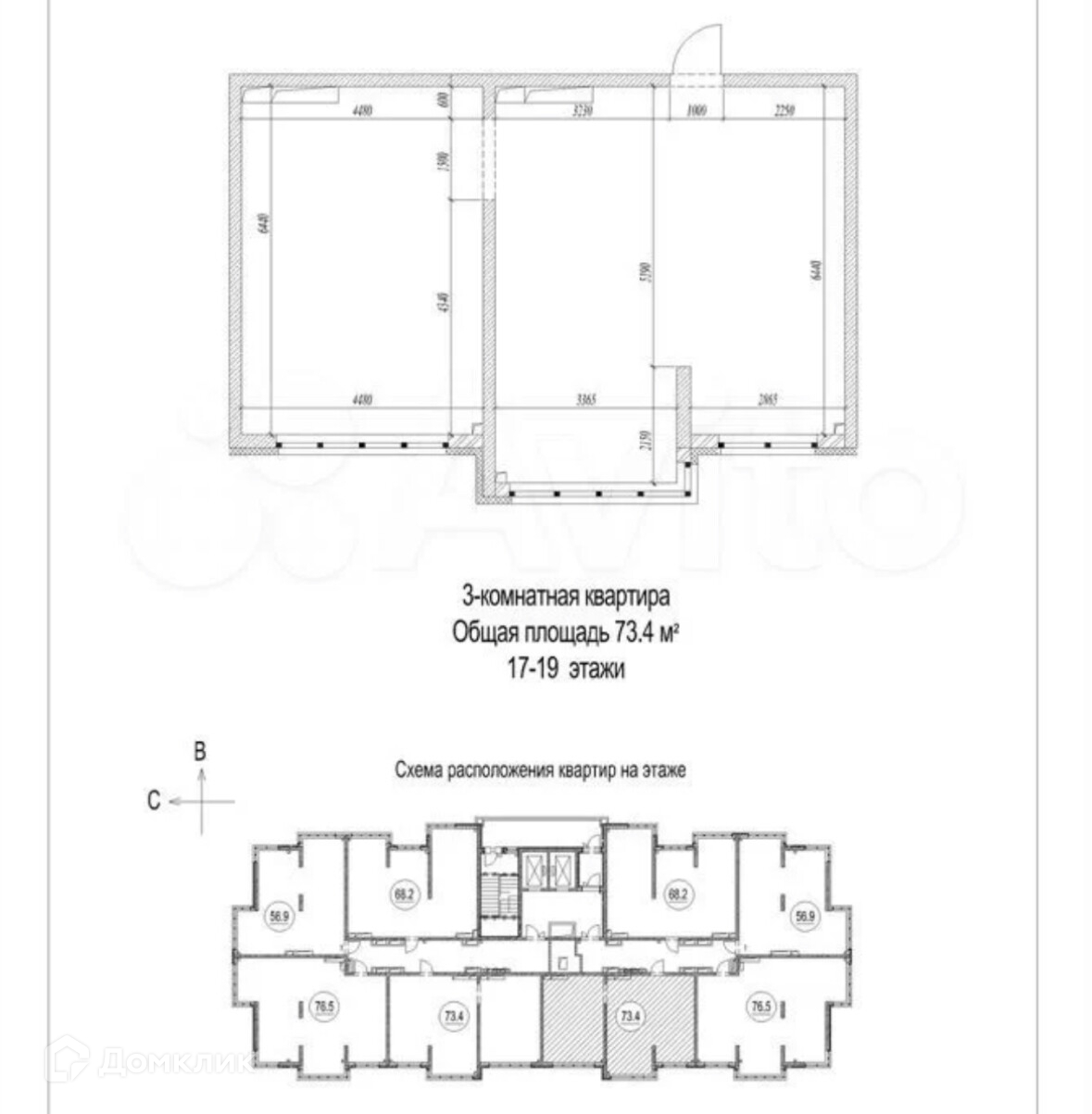 Общая площадь 73.4 м2
