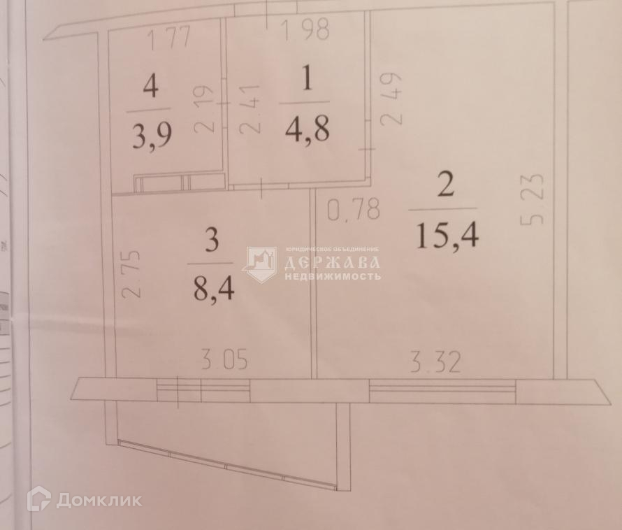 Жилая площадь 15.4 м2