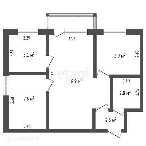 Общая площадь 42.6 м2