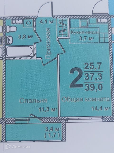 Общая площадь 39 м2