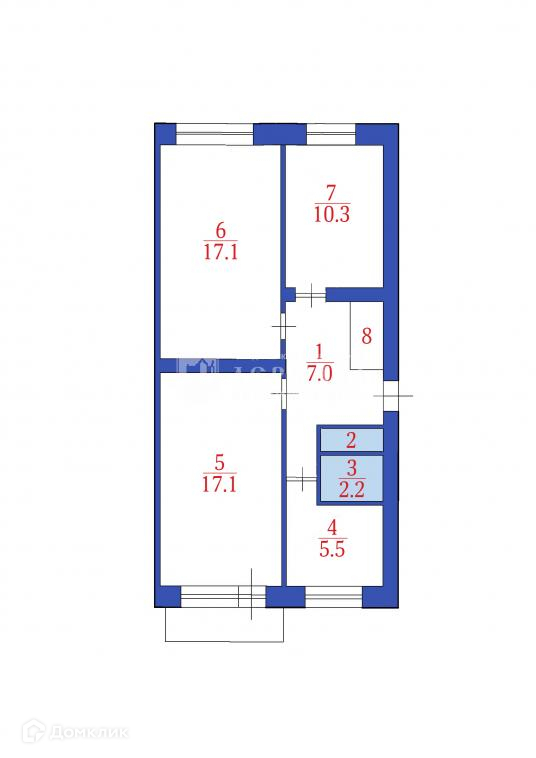 3-комнатная квартира, 62.8 м2, этаж 3 / 5, на продажу в Кемерово, Новогодняя улица, 21
