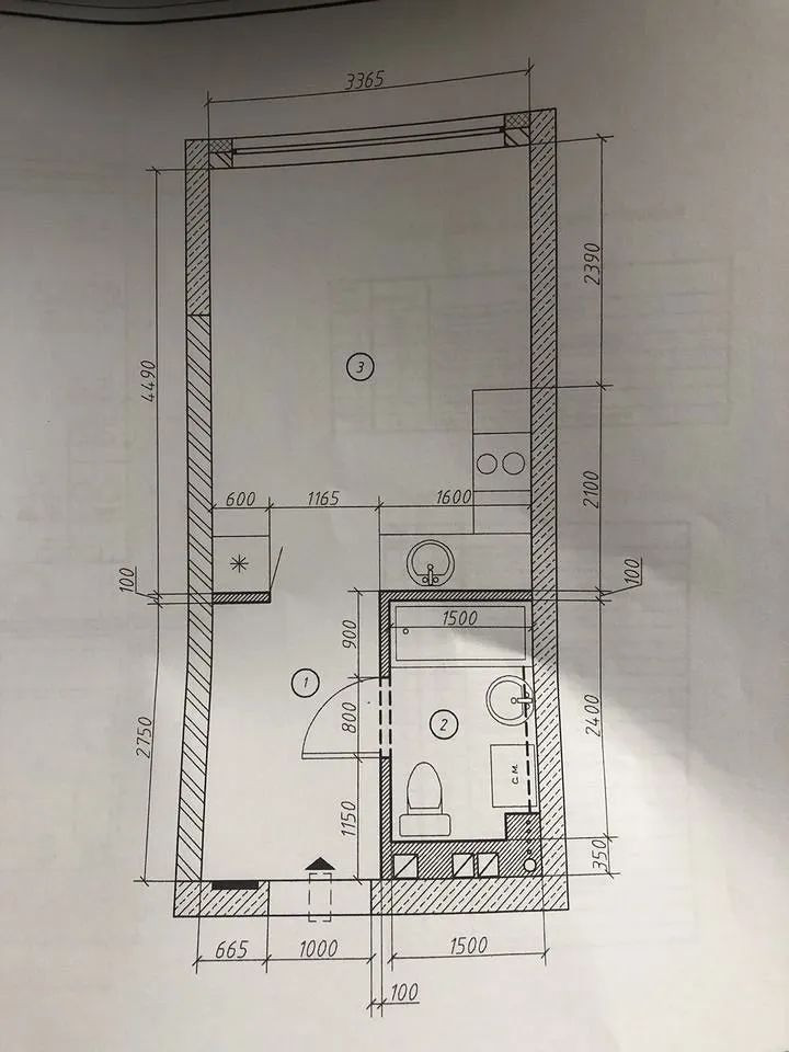 Площадь кухни 3 м2