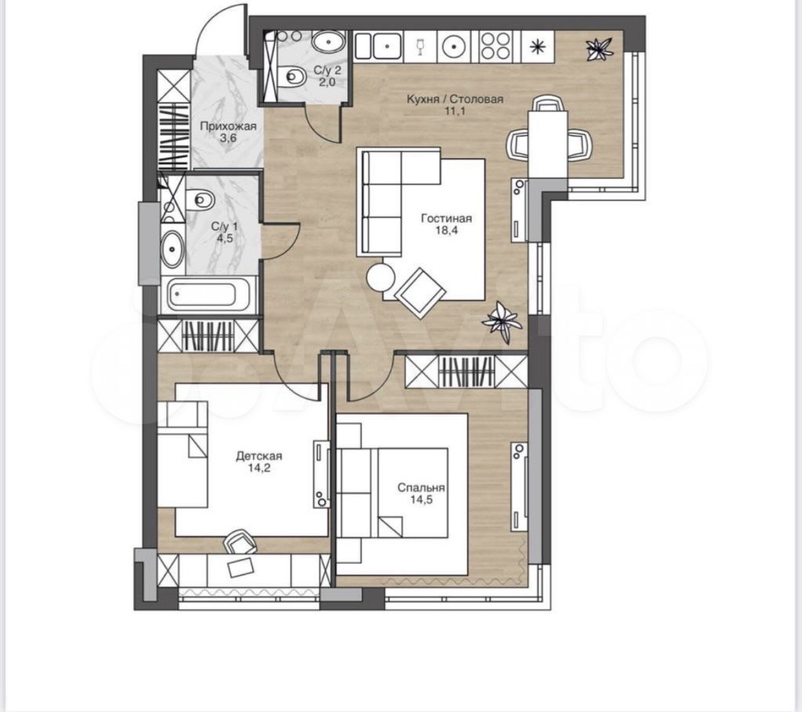 Общая площадь 69.2 м2
