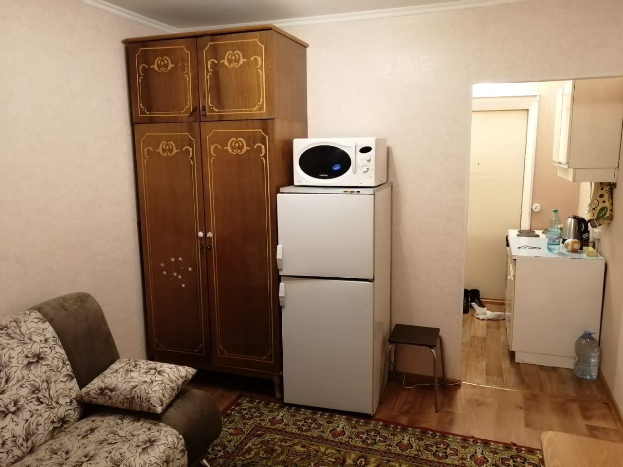 Однокомнатная студия на 5 этаже панельного дома в Ленинском районе г. Кемерово.