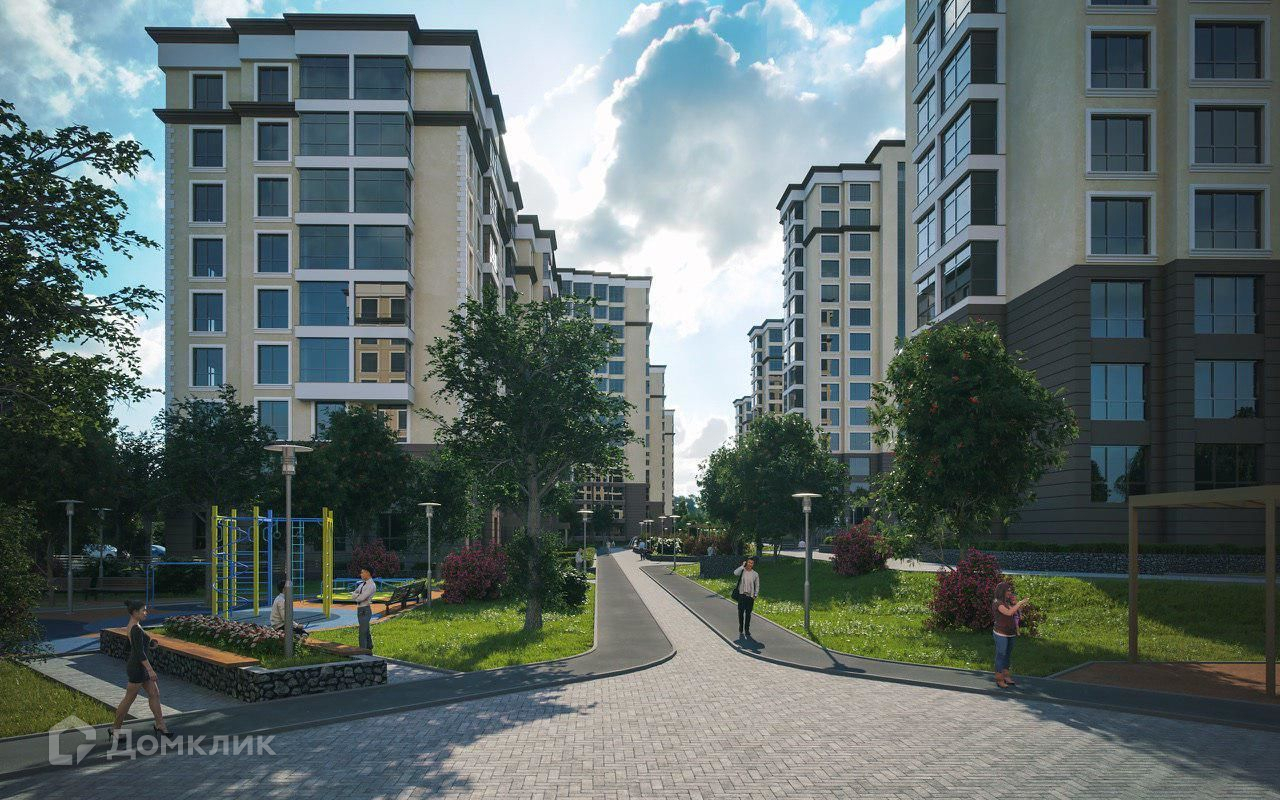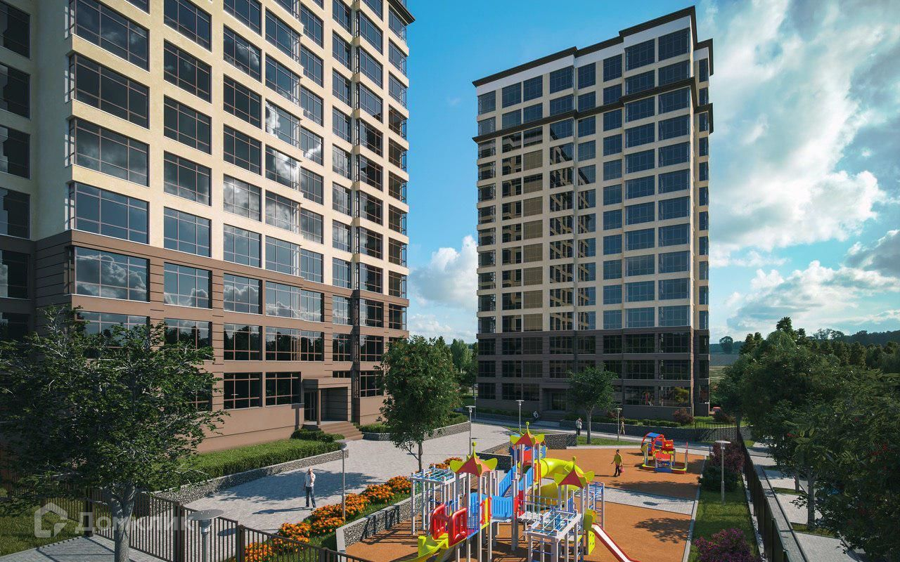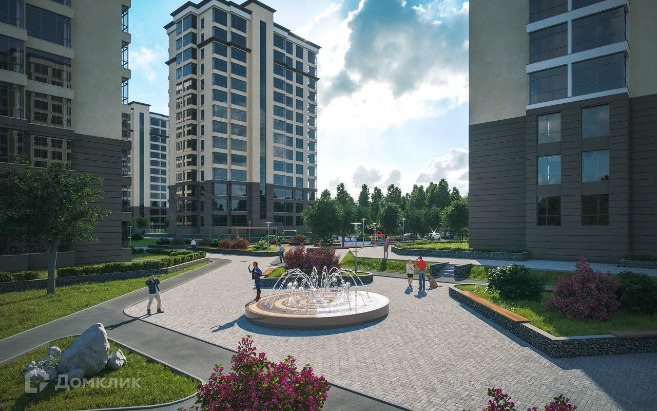 Двор–парк огромной территории размером в 5 футбольных полей, что равняется 3,5 Га., полностью закрыт от автомобилей. Наземный паркинг вынесен за дворовую территорию. Также внутри вас ждут современные детские площадки с безопасным покрытием для детей от 0 до 12 лет, площадки для спортивных игр, беговая и велосипедная дорожки, собственный фонтан, зона для проведения праздничных и развлекательных мероприятий.