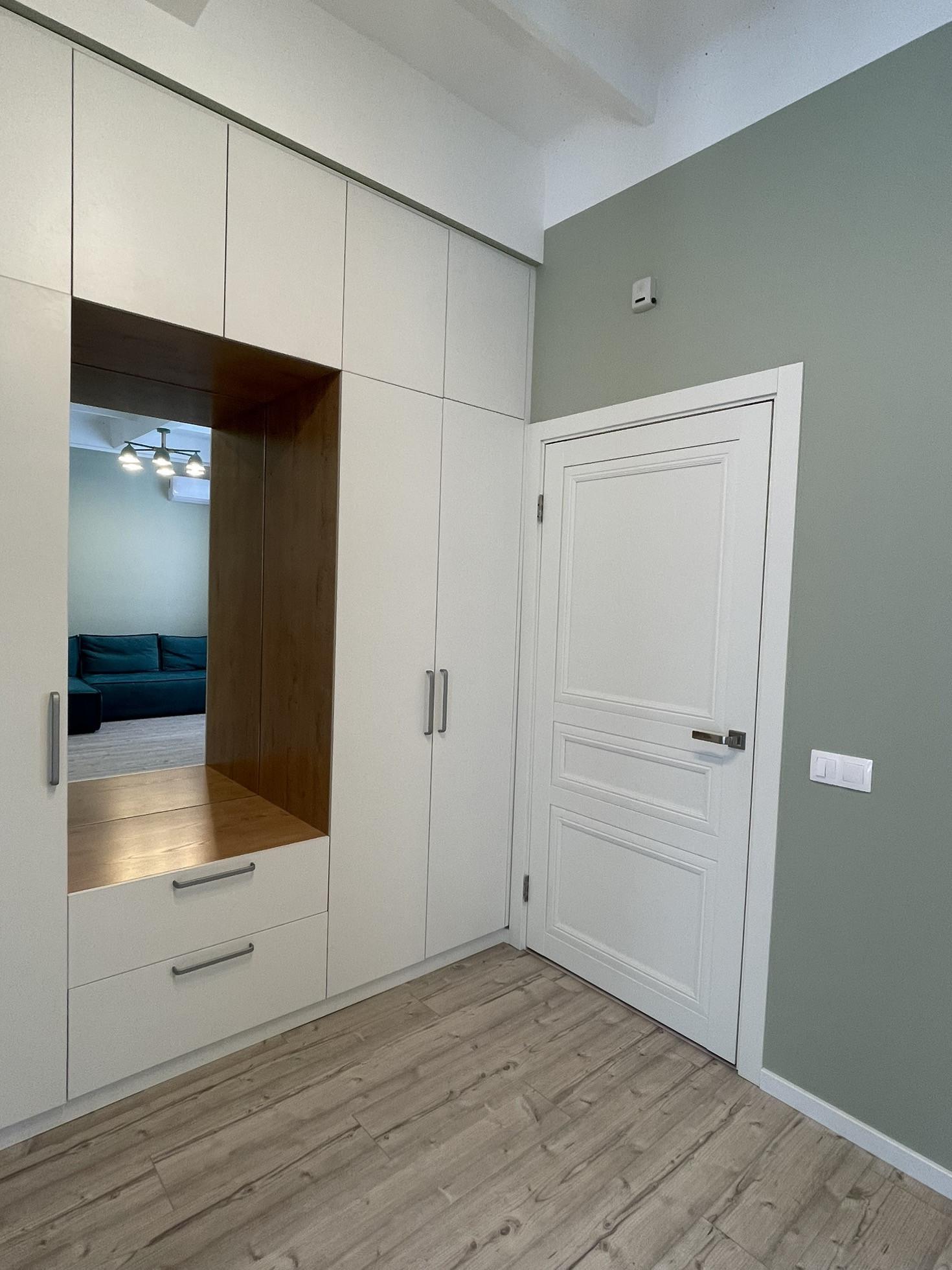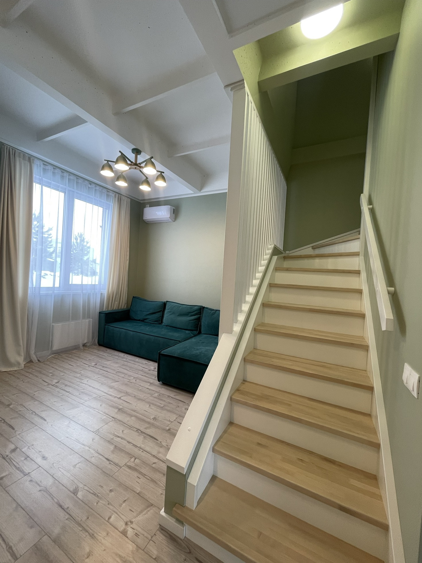 Есть два кондиционера, тёплый пол в тамбуре и на 2м этаже в ванной комнате. В тамбуре при входе во строенной мебели, вмонтирована сушилка.