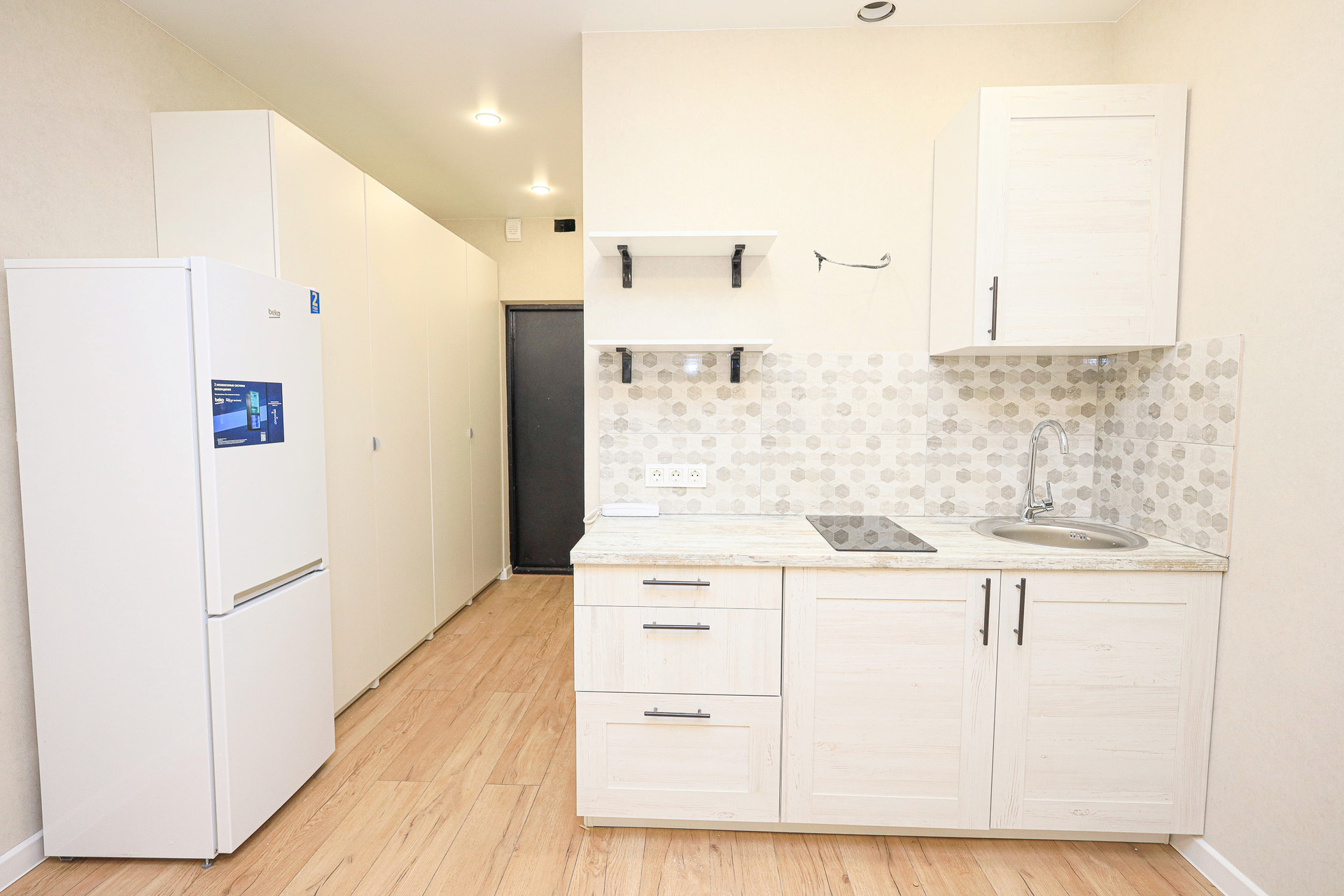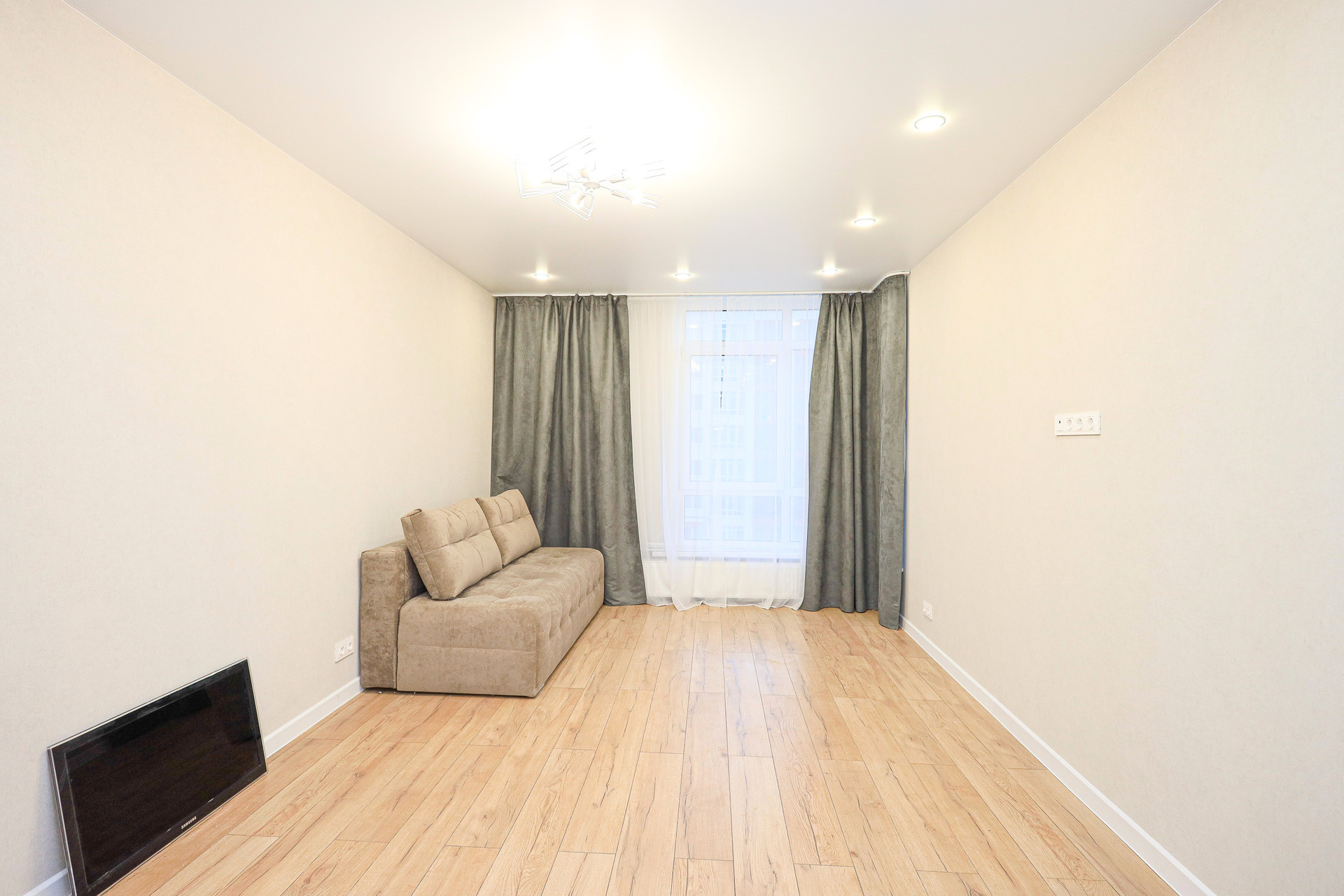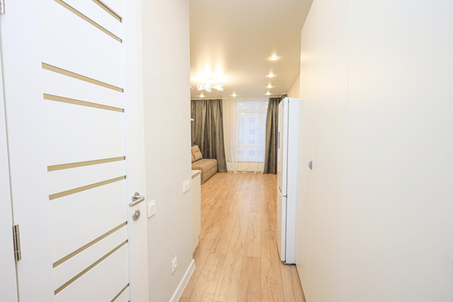 - большая просторная комната (20 м2) + ванная комната и прихожая, выполнен хороший ремонт в светлой цветовой гамме, в наличие уже есть необходимая мебель и бытовая техника, большое количество мест хранения, шторы, люстры, светильники для комфортного проживания !!!