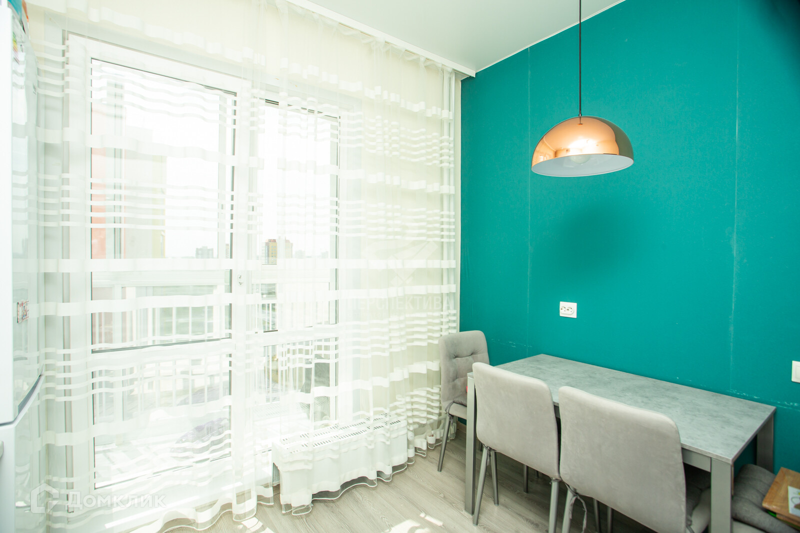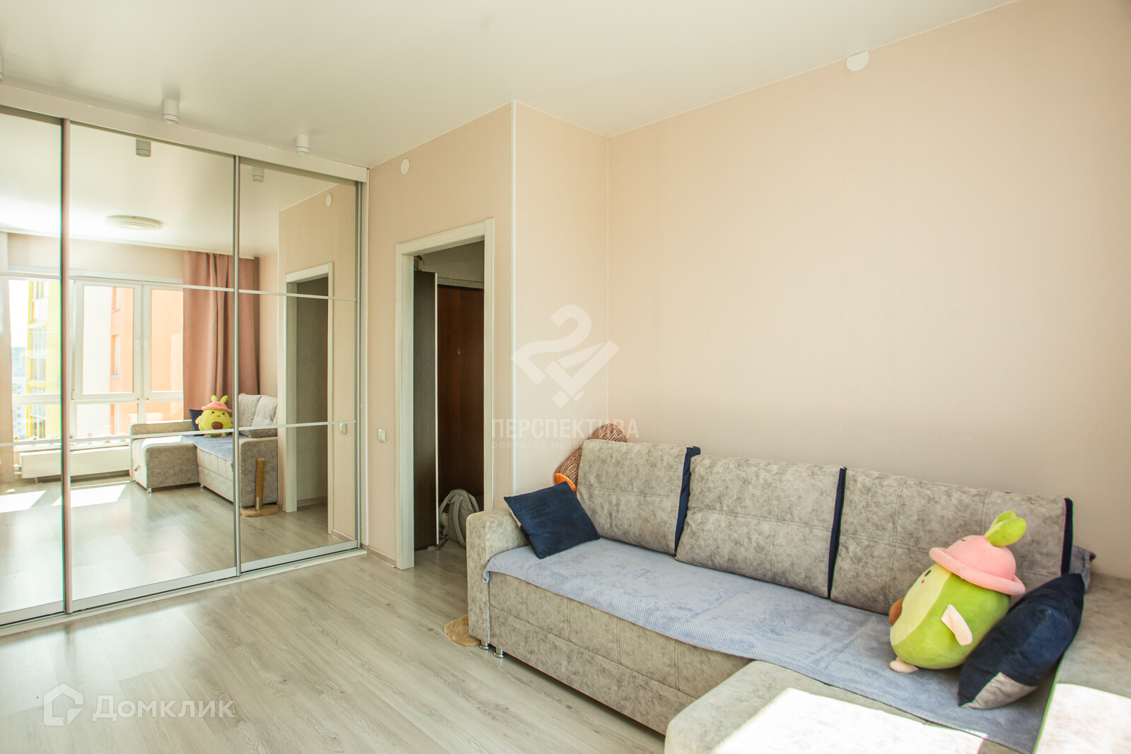 Пол - ламинат, стены обои, потолок натяжной, балкон застеклен, с/у совмещенный - плитка.